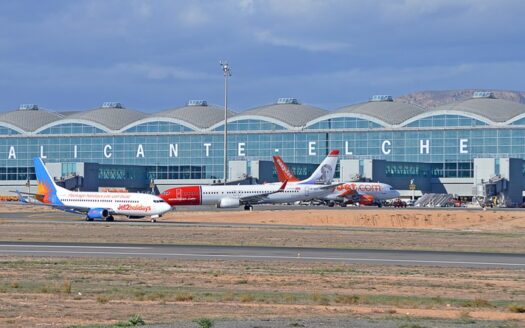 View of Alicante-Elche Miguel Hernández Airport summer 2025.