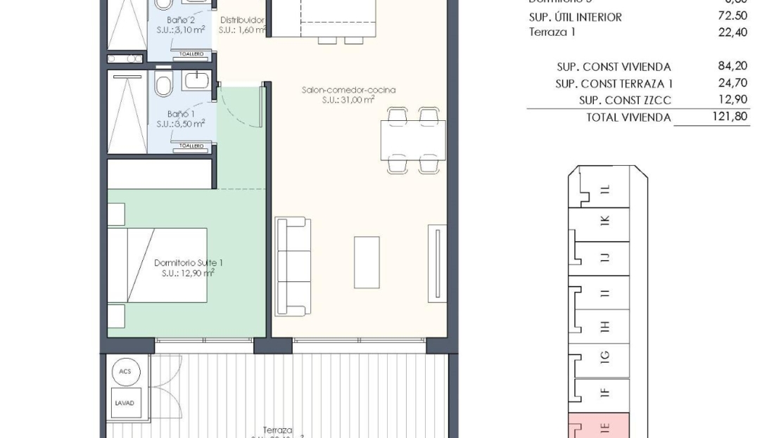 Residential made up of 35 apartments and penthouses with 2, 3 and 4 bedrooms and 2 bathrooms, open plan kitchen with the lounge area, fitted wardrobes, terraces.