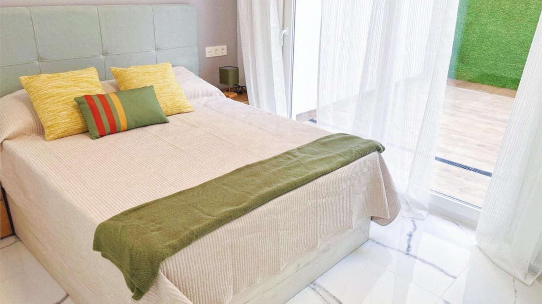 We present this 2-bedroom apartment just 160 meters from the beach in the city of Torrevieja.The property features a spacious and bright living room with a fully equipped open-plan kitchen, dining area, and a cozy lounge with plenty of natural light. The master bedroom has direct access to a charming private patio with an outdoor shower clad in wood. Both bathrooms have been completely refurbished with high-quality materials and walk-in showers, providing a luxurious and comfortable experience.Key features:•2 bedrooms and 2 modern bathrooms•Private patio with outdoor shower•Kitchen equipped with integrated appliances•Air conditioning and double-glazed windows•Marble effect flooring throughout the property•Prime location just steps from the sea•Surrounded by restaurants, supermarkets, and a 24-hour pharmacy.Shall we schedule a visit? Contact us, and we will be happy to assist you.