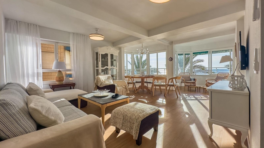 For sale this large apartment with stunning sea views. On the first line of El Cura beach, in Torrevieja. It is the busiest beach with a promenade, where there are natural sea pools. The building has a concierge and is guarded 24 hours a day. Located a few meters from the pier where you can walk and enjoy walks surrounded by the sea. It has 3 bedrooms (two doubles with large 160x200 beds and large storage compartments and 1 bunk bed in the smallest room), 2 bathrooms with large showers, fully equipped kitchenette with island all brand new appliances, large laundry room. , the apartment is newly renovated (electrical installations, water and sewage completely changed. Hot and cold air conditioners installed in each bedroom, it has TV and Internet, brand new high-quality furniture. 2 apartments on each floor, with 2 independent elevators. Great opportunity to get a luxurious apartment in a unique area with unbeatable views. Shall we schedule your visit?