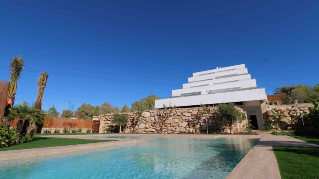 Discover this stunning apartment located in the prestigious residential area of Las Colinas Golf, one of the most exclusive enclaves on the Costa Blanca. This practically brand-new property combines contemporary design, elegance, and comfort in a beautiful natural setting.Located on the first floor and facing south, the apartment enjoys excellent natural light throughout the day. It features three spacious bedrooms, two modern bathrooms, and a private 41 m² terrace with spectacular views of the communal pool, gardens, and the Mediterranean Sea. Every detail has been carefully designed to offer a unique living experience, where luxury and tranquility blend seamlessly.The designer kitchen, fully equipped with high-end appliances, is elegantly integrated into the bright living-dining room. The premium materials, sophisticated finishes, and contemporary style make this apartment a true gem.The property includes a parking space and storage room, as well as access to the excellent community facilities: swimming pool and landscaped gardens. Everything has been designed to offer an exclusive lifestyle, surrounded by nature, golf courses, and expansive views.This apartment is a dream home for golf and Mediterranean enthusiasts, ideal for both permanent residence and as a second home. An exceptional opportunity to acquire a luxury property in one of the most sought-after areas of the Costa Blanca.