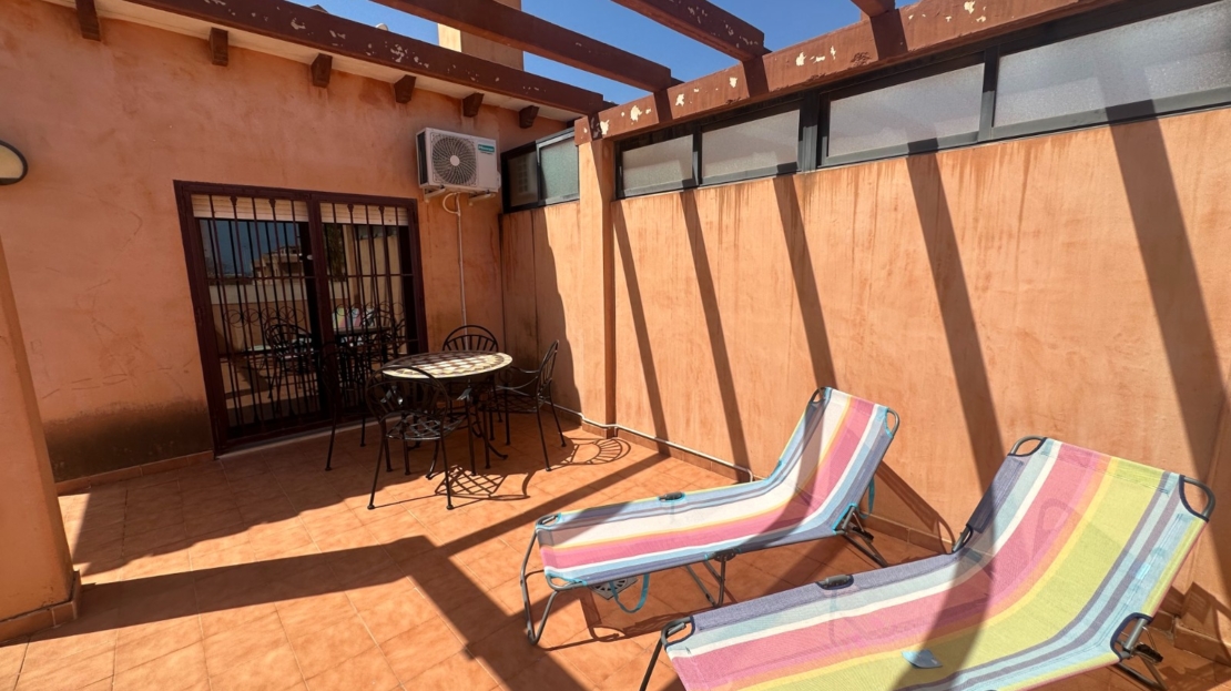 Located in the sought-after gated complex Altos del Sol II in Torrevieja, this charming top-floor apartment offers the perfect blend of comfort, space, and Mediterranean lifestyle.
