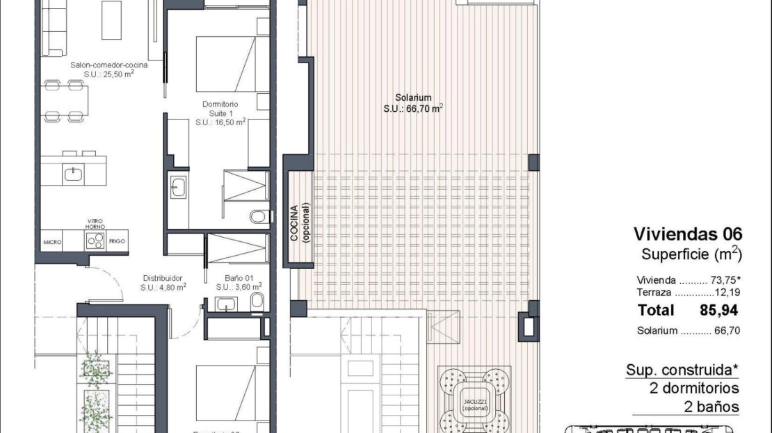 Discover this spectacular residential complex in Lo Marabú, Ciudad Quesada, comprising 80 2 and 3 bedroom homes with 2 bathrooms. Designed with a modern and efficient approach, these properties offer spacious terraces, cross ventilation and high quality finishes to maximise comfort and energy efficiency.