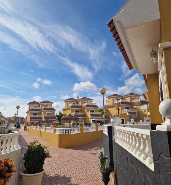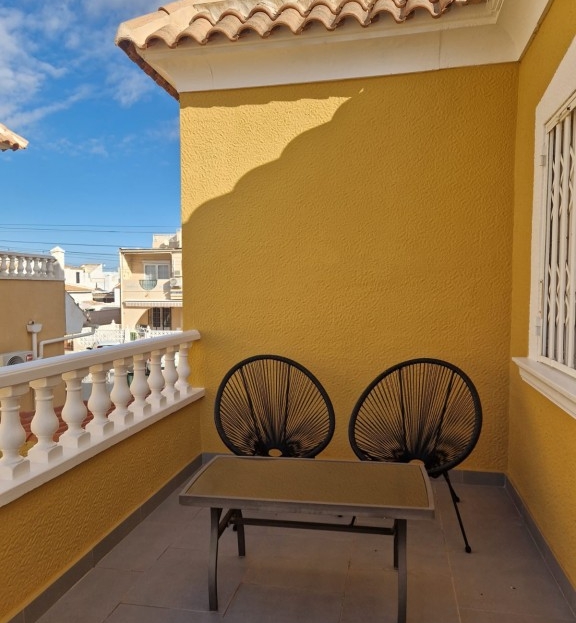 spacious corner house with 3 bedrooms. This fully renovated corner house features a spacious living and dining room with a fully equipped kitchen and utility room. The property has three spacious bedrooms and two modern bathrooms, one of which is on the ground floor. This beautiful property has access to four terraces, perfect for relaxing or entertaining outdoors. Air conditioning is available throughout. The property is sold unfurnished.Discover this charming two-storey semi-detached house, located in a secure private residential complex with a beautiful communal swimming pool and green areas.Ideally located just 6 minutes from the beach, 5 minutes from La Zenia Boulevard shopping centre, 10 minutes from Torrevieja hospital and 2 minutes from local schools.A perfect blend of comfort, light and tranquillity, ideal as a family home, holiday home or investment property on the Costa Blanca. A viewing is highly recommended!