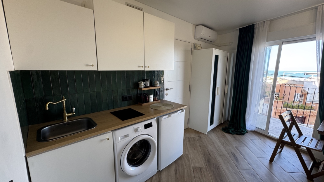 First-floor apartment just 400 m from the beach. This fully renovated studio features a living room with open-plan kitchen and access to a bright terrace. Located within walking distance to shops and services, it’s ideal as a holiday home or rental investment. Open sea views and Energy Certificate rated D.