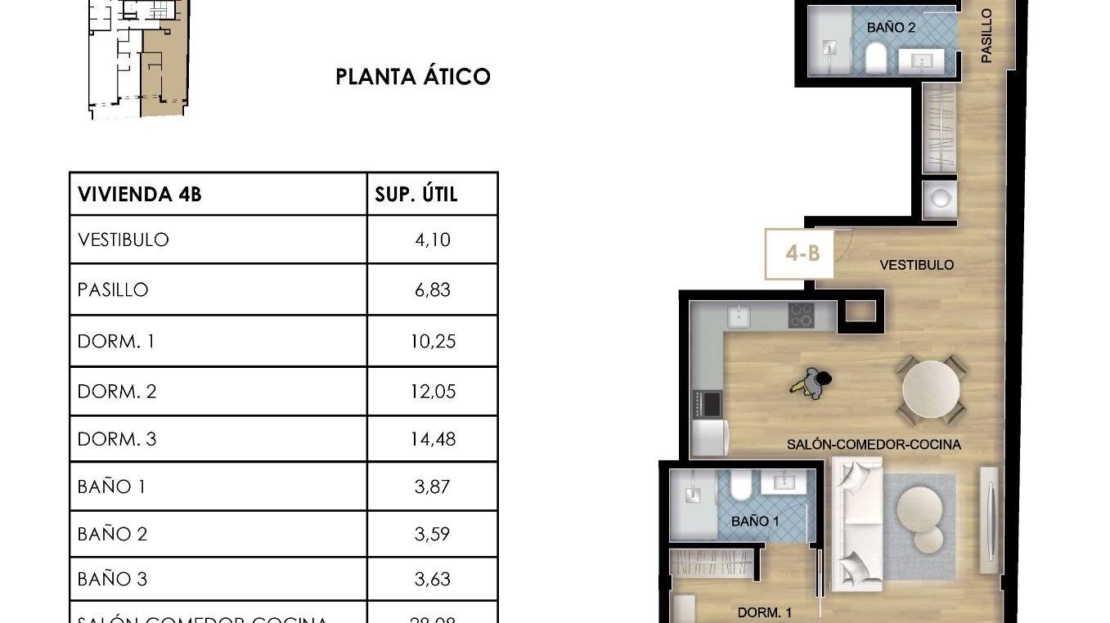 Modern properties have 3 bedrooms, 3 bathrooms, open plan kitchen with the lounge area, heated bathrooms floors, spacious terraces, fully equipped wardrobes and kitchen.