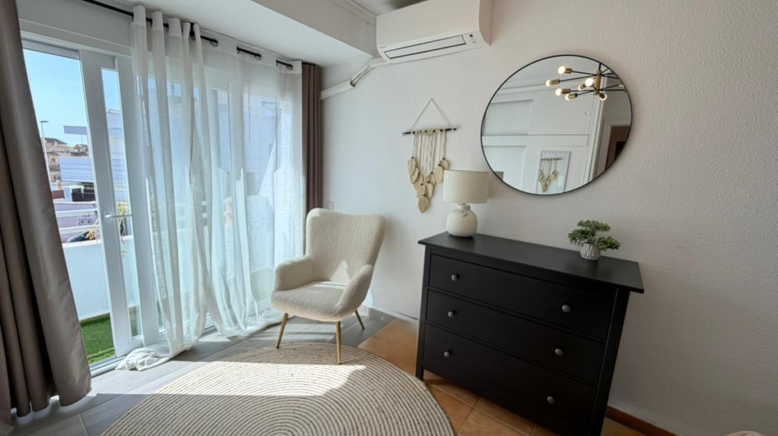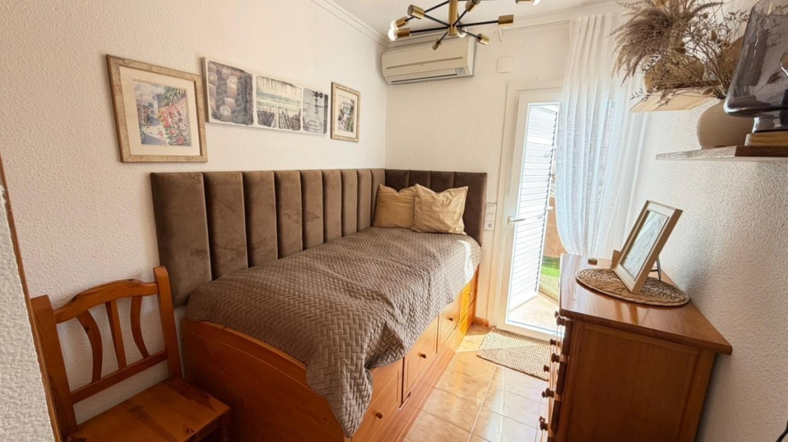 Beautiful 3-bedroom townhouse with a private pool in Torrevieja This south-facing home enjoys abundant natural light throughout the day and is in excellent condition, ready to move into. It features 85 m² of living space on an 80 m² lot, laid out in a practical and functional way. It has three bedrooms, all equipped with air conditioning, and two full bathrooms, offering comfort for the whole family. The separate kitchen provides convenience and space, while the cozy living-dining room with a fireplace creates a warm and pleasant atmosphere year-round. Outside, the two private patios stand out, ideal for enjoying the Mediterranean climate, hosting outdoor gatherings, or creating relaxation areas. Additionally, the home features a private pool, a perfect added bonus for enjoying complete privacy at home. LOCATION: Torrevieja is in the province of Alicante (Costa Blanca). It is famous for its Mediterranean climate and its coast. We cannot forget its promenades where we can find some restaurants along the fine sandy beaches. It also has many excellent beaches such as Playa de los Náufragos, Playa de los Locos and Playa de la Mata. Therefore, it is considered a remarkable tourist town where the environment takes an important place as an important tourist attraction. In addition, we can find many shopping centres (Habaneras, La Zenia Boulevard), golf courses, sport centres, hospitals (such as Hospital Universitario de Torrevieja) and airports such as Alicante Airport (35 km away) and Region of Murcia International Airport (43 km away). DISTANCE TO THE SEA: 200m Should you have any question do not hesitate to contact us!