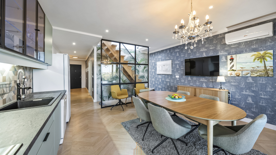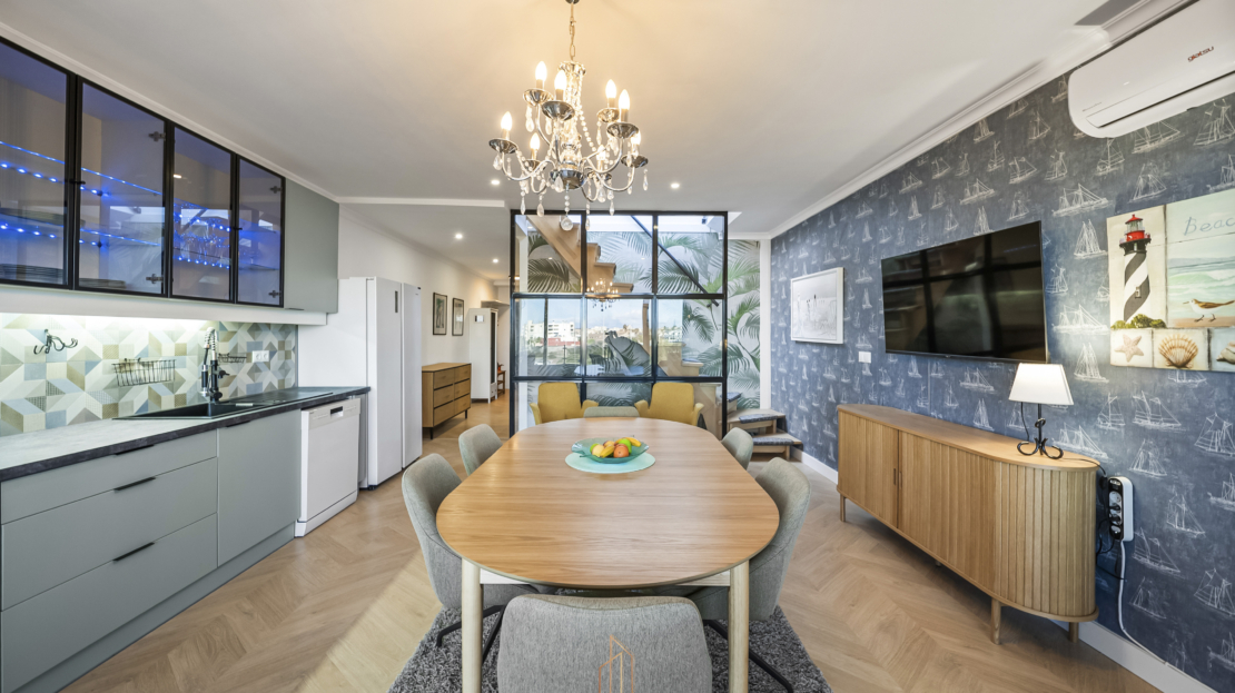 This townhouse offers modern comfort, versatile indoor and outdoor living, direct beach access, and stunning Mediterranean views, a wide choice of restrants and bars, making it a perfect holiday home or year-round residence.