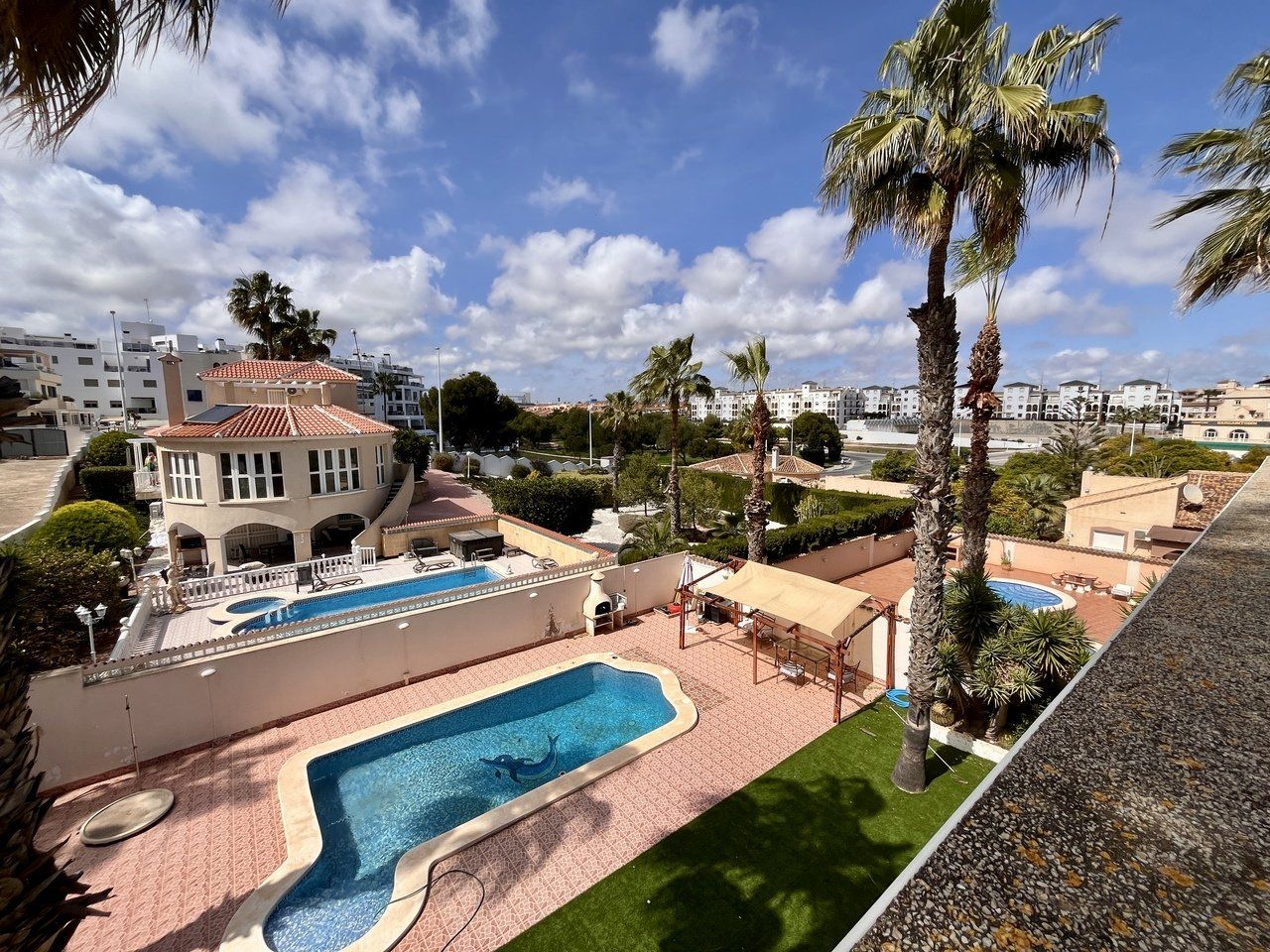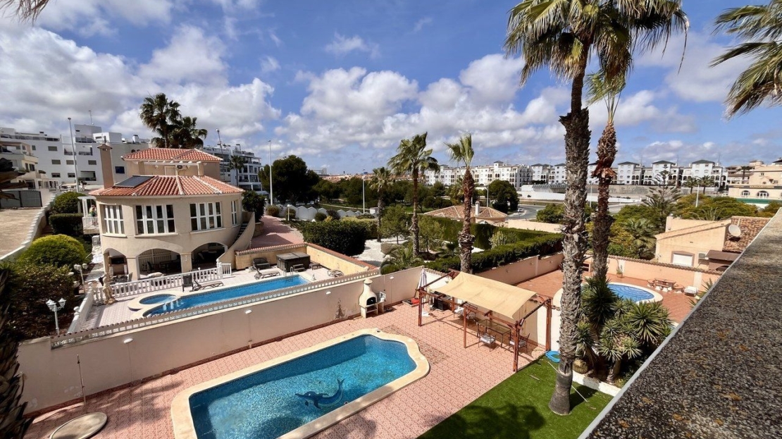 A exceptional detached villa, located in the highly sought-after and prestigious area of La Zenia, renowned for its proximity to local amenities, stunning beaches, and vibrant lifestyle. This impressive property is just a short stroll from the golden sands of La Zenia beach and the popular La Zenia Boulevard shopping centre, offering an unbeatable location for both convenience and leisure.The villa is accessed through secure electric gates, which open onto a large private driveway with ample space for parking. Once inside, the property reveals an expansive and contemporary design, featuring 5 spacious bedrooms and 3 beautifully appointed bathrooms, offering plenty of room for both family living and entertaining.The ground floor is dedicated to an open-plan living area that exudes a sense of space and light. The lounge, dining, and kitchen areas flow seamlessly, creating the perfect environment for modern living. Large patio doors open directly onto the covered terrace, providing an effortless connection between the indoor and outdoor living areas. The private pool, surrounded by well-maintained gardens, offers a peaceful oasis for relaxation, outdoor dining, and entertaining in style.The villa is set on a generous plot of approximately 700m², providing an abundance of outdoor space, perfect for enjoying the Mediterranean climate. The beautifully landscaped gardens surround the property, creating a private and tranquil atmosphere. There is plenty of room for further outdoor enhancements, such as a barbecue area or additional seating areas.This stunning home is presented in immaculate, "key-ready" condition, making it move-in ready without the need for any additional work. With modern fixtures and fittings throughout, this villa offers a blend of luxury, comfort, and convenience, providing everything you need for a perfect family home or a luxurious holiday retreat.Whether you're looking for a permanent residence or a holiday home, this villa offers exceptional value in one of the most desirable locations on the Costa Blanca. The combination of a prime location, spacious living areas, and high-end features makes this property a true gem.