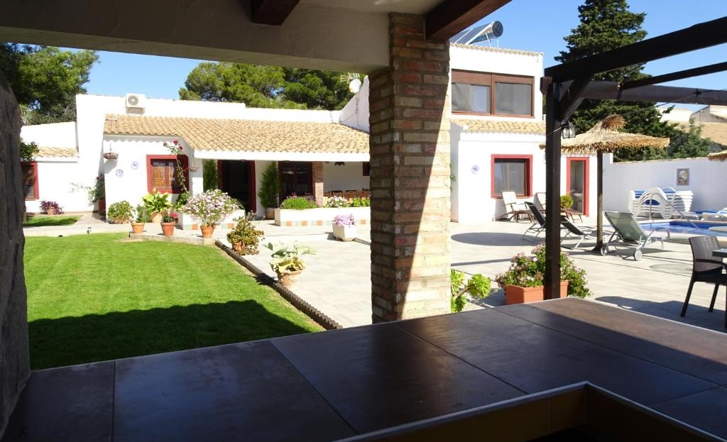 Sold fully furnished with many extras including air conditioning throughout, solar panels for hot water, plus 2 electric heaters in case they are needed. The villa is built in a traditional rustic style with original beam features, high ceilings and unique decoration. The villa offers excellent potential for a large family home or as a rental investment due to it´s pre-existing tourist license. The villa is located in an area close to supermarkets, bars and restaurants. The golfcourses are at 3.3km. The beach of Dehesa de Campoamor is at 5km. It's a 45 min. drive from the airport. And if you want to do some shopping there's the La Zenia Boulevard Shopping Centre at 5km. Year built: 1985