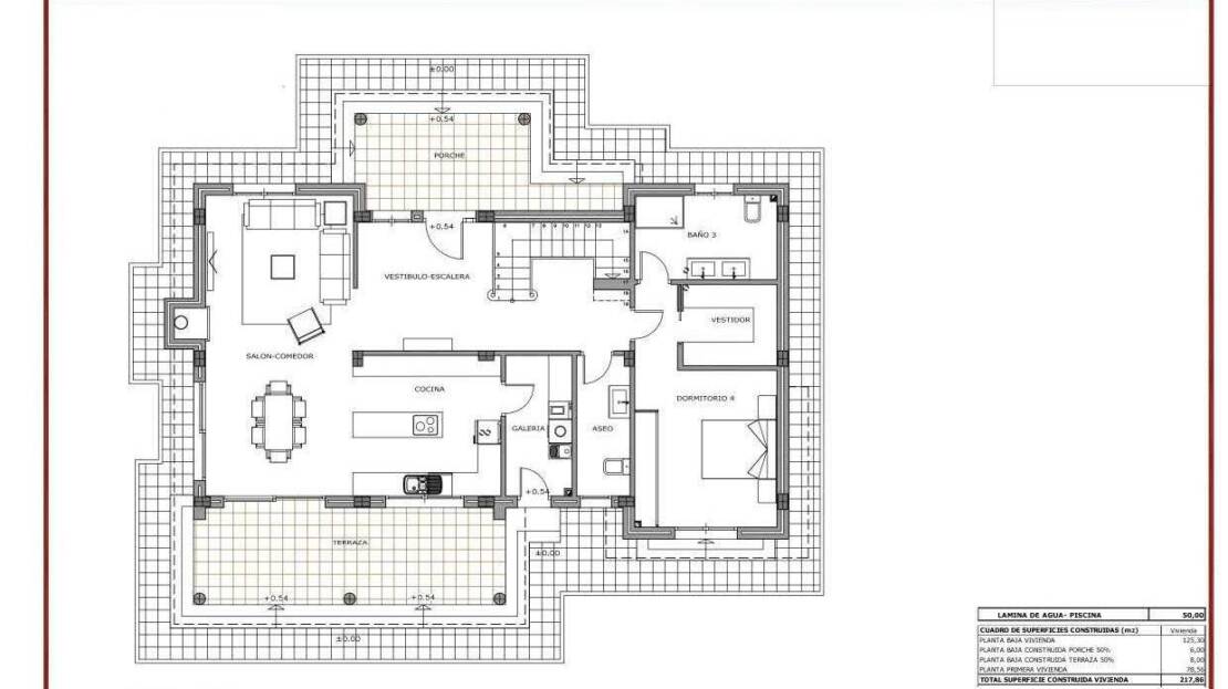 You can customise the house to your liking, most internal changes are free of charge, and you can choose finishes for tiles, kitchen worktops, marble for stairs or shelves, etc. The houses can be extended and we can even build your own design. You can add various extras such as a larger swimming pool, single or double garage, guest house, etc., at an additional cost.