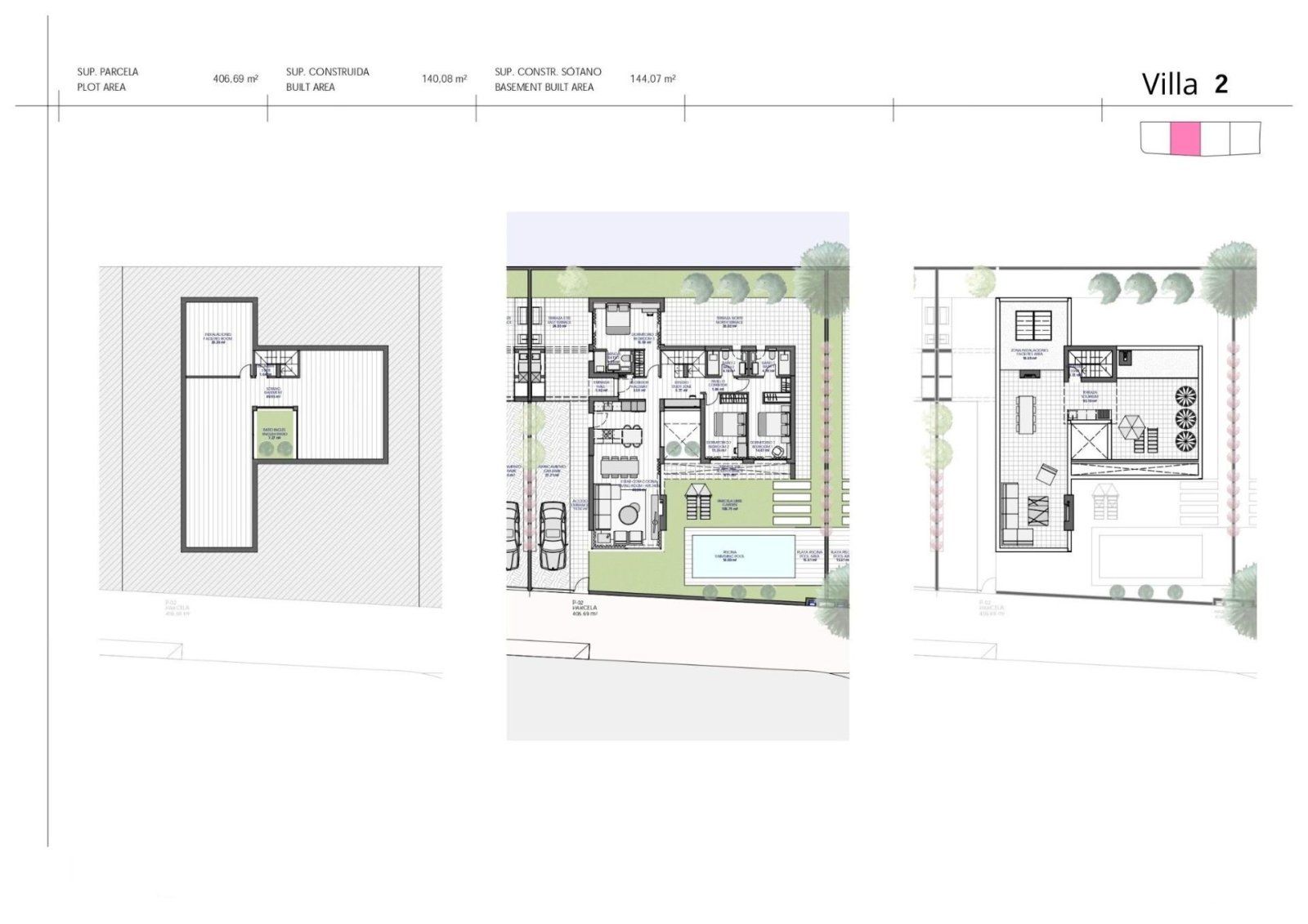 This exclusive project consists of 4 independent villas with 3 bedrooms and 3 bathrooms on one floor, with private swimming pool 3 x 7, open plan basement with light and ventilation through an English patio and large solarium on a plot of 400 m2 approx. The properties have fully equipped kitchens and bathrooms and pre-installation of air conditioning ducts.