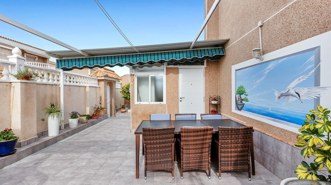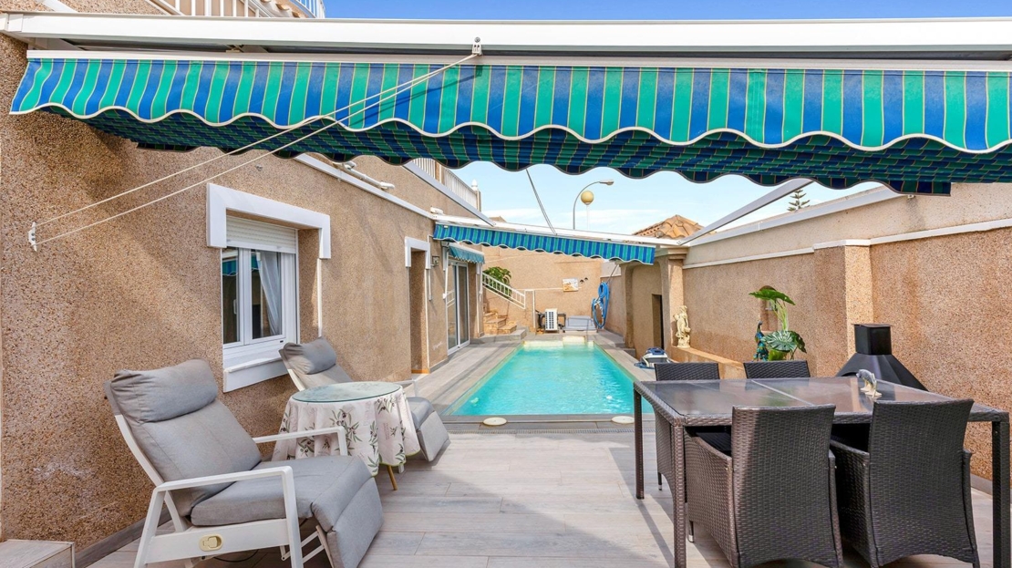 Exclusive independent Mediterranean-style villa with sea views and private pool in Los Altos, Torrevieja Discover this magnificent independent villa in one of the most sought-after areas of Torrevieja. With an elegant Mediterranean-style design, this property offers the perfect balance of comfort, privacy, and proximity to all services. 5 bedrooms | 3 bathrooms | 131 m² built | 330 m² plot Prime location: Located in the quiet urbanization of Los Altos, just a few minutes from the beaches of Punta Prima and with easy access to schools, supermarkets, restaurants, and shopping centers like La Zenia Boulevard and Habaneras. Home distribution: ✔ Ground floor: Bright living room with access to terraces and relaxation areas. Fully equipped independent kitchen with laundry area. 1 bedroom and 1 bathroom with shower. Beautiful porch and gardens. ✔ Upper floor: 2 bedrooms. 1 full bathroom with bathtub. Terrace with clear views. ✔ Semi-basement: 2 additional bedrooms, perfect for guests. Leisure area. 1 full bathroom with bathtub. Storage room. Tool area. On this floor, there is direct access to the spectacular private saltwater pool and a cozy terrace with a fireplace. ???? You will love: ✅ The private saltwater pool. ✅ Several terraces to enjoy the sun and outdoors. ✅ Urbanization with communal pool. ✅ Sold fully furnished. ✅ Excellent communication with the AP-7 and N-332, facilitating access to Torrevieja, La Zenia, and Alicante airport. A unique property, ideal both as a permanent residence and for enjoying an unforgettable vacation on the Costa Blanca. Don't miss this opportunity! Contact us for more information or to schedule a visit. Taxes and fees not included in the price.