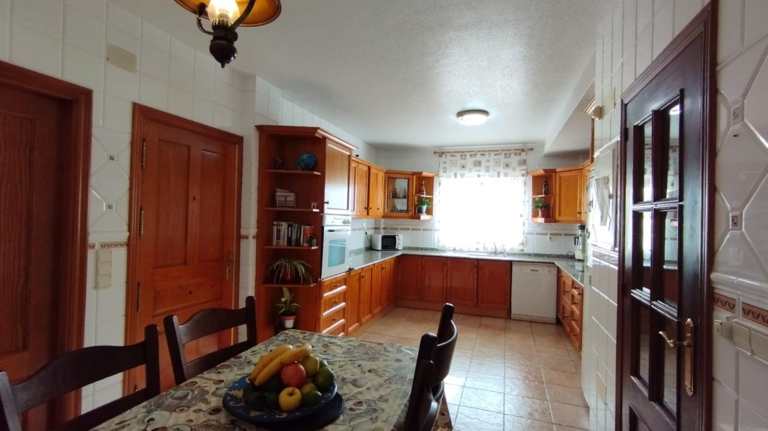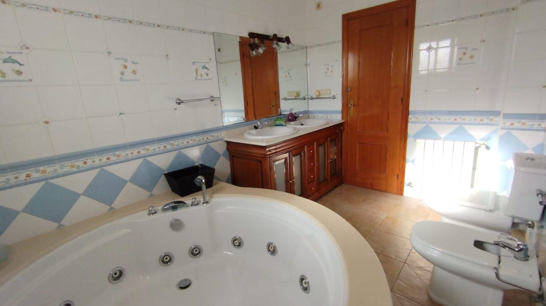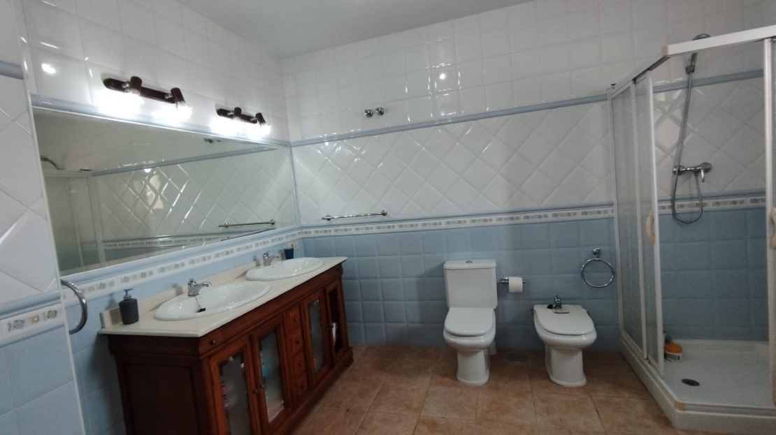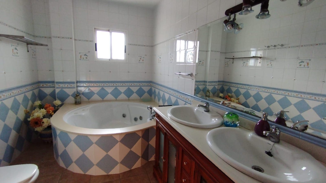 Magnificent Villa with Breathtaking Location in Torrevieja Overlooking the Salt Lakes and Mountains Welcome to this impressive and spacious villa located in Torrevieja with spectacular views over the salt lakes and mountains. The villa has access to a large communal pool. This large villa offers a generous 375 m2 and is ideal for a large family or as a luxurious holiday home. Spread across 2 floors and a spacious basement, the house boasts 6 large bedrooms, 5 bathrooms, a living room, dining room, and a large kitchen-dining area connected to the living room and the villa's laundry room. The kitchen is well-equipped with tiles on all the walls and has an open connection to one of the courtyards. There is also a large double bedroom on the ground floor. On the first floor, you'll find 5 bedrooms, including the master bedroom with a jacuzzi and walk-in closet. Wake up to the stunning views over the salt lakes and mountains from the spacious master bedroom. There is also another large bathroom with a jacuzzi on this floor. All bedrooms in the villa have built-in closets. The basement, which spans an impressive 135 m2, contains 2 rooms and a bathroom with high ceilings. On the second floor, there is a loft area with access to the large rooftop terrace, offering a unique 360-degree view. Enjoy Costa Blanca's many hours of sunshine and an impressive sunset from the rooftop terrace. The villa is situated in a quiet area close to nature. The impressive 600 m2 plot is tiled and easy to maintain. The garden features several terrace areas and garden spaces, with the possibility of installing a private pool on the plot. This villa is truly something special with its fantastic location, ample rooms, and large plot. A rare opportunity to acquire this Mediterranean gem.