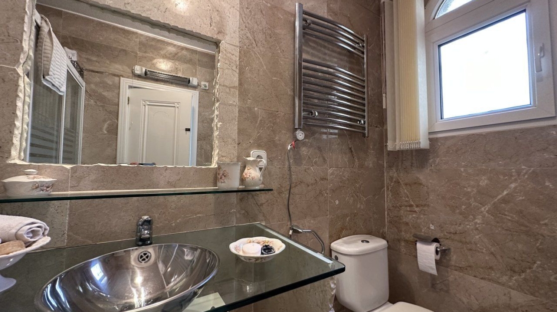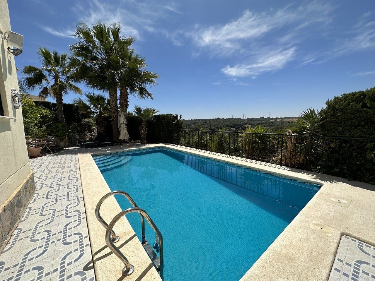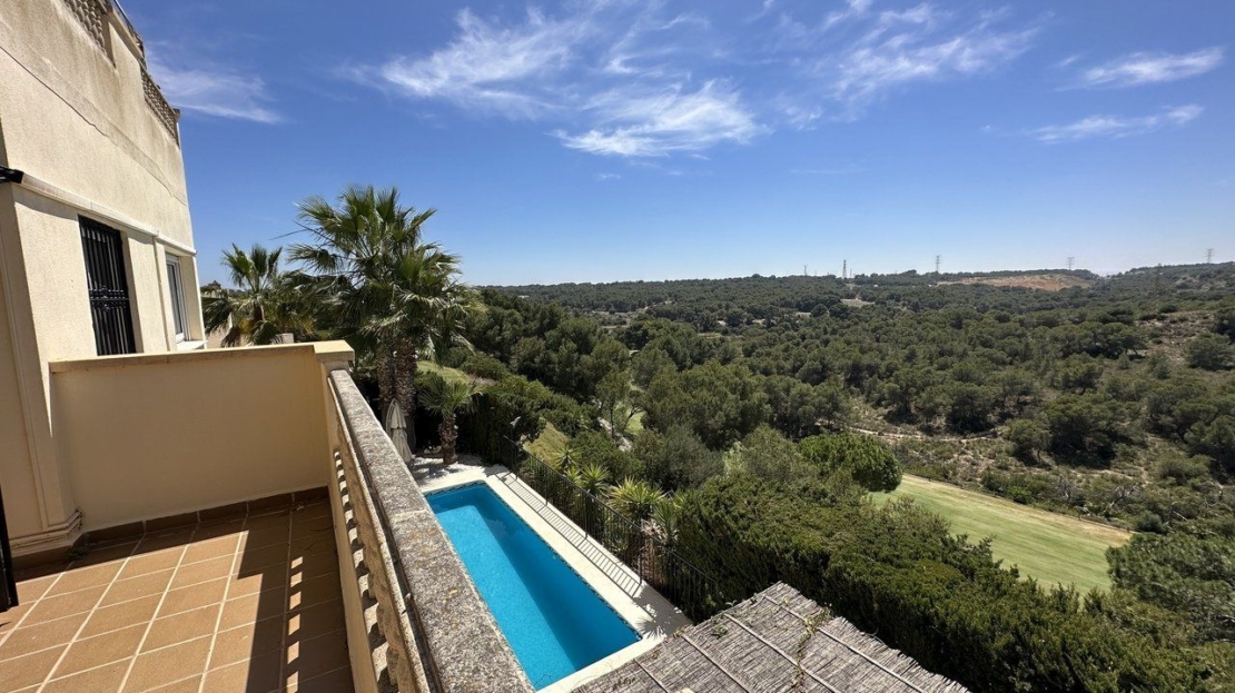 Immaculate villa for sale located with elevated, front-line views located at Las Ramblas golf resort. This impressive south facing property was designed so that every room boasts spectacular views across the golf course and pine forrest. On the main level of the property is a huge living room with seperate television and dining areas along with a guest toilet. There is an impressive fully equipped kitchen with vaulted ceiling and a staircase leading to an additional chill out area and a private office. From the living room there is access to a very sunny terrace, purpose built bbq and outdoor dining area with again more breathtaking views of the golf course. An internal staircase leads down to the master bedroom which had a private sun terrace, dressing room and double bathroom with a shower and bathtub. There are two additional guest bedrooms and a guest bathroom. The property also has a second lounge and living area with kitchen, bathroom and even a cocktail bar with direct access to the swimming pool and sunbathing deck. The property has been finished to a high quality and finished with many, many extras including private garage, air-conditioning, two fireplaces, mosquito nets, electric gates and alarm system.