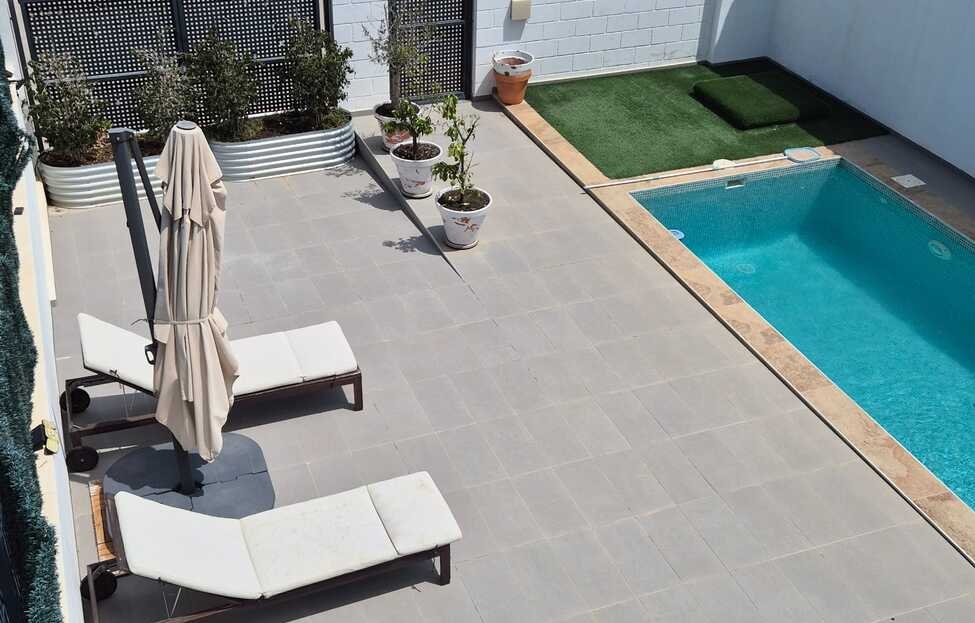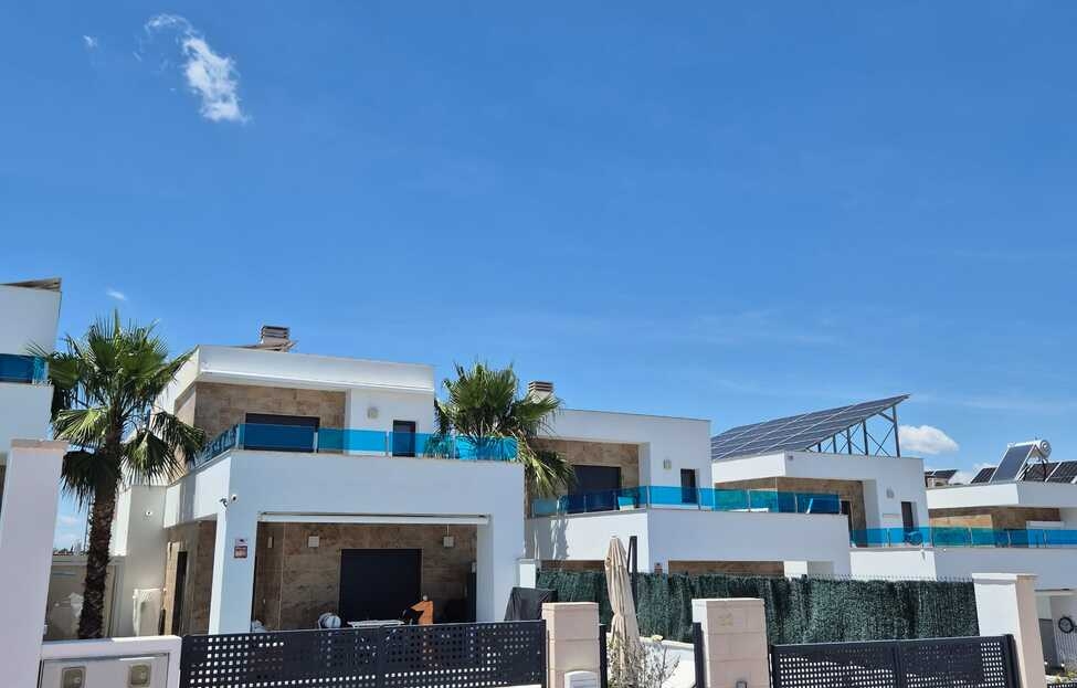 We present this spectacular detached villa in one of the most promising residential areas of Bigastro (Alicante).This home perfectly combines contemporary design, energy efficiency, and natural tranquillity, just 25 minutes from the Mediterranean beaches and with excellent access to services and main roads. Modern with 3 bedrooms and 3 bathrooms, located in the picturesque village of Bigastro, with stunning mountain views and just a 25-minute drive from the beautiful Mediterranean coastline.The villa also has 2 additional parking spaces available in a building 5 minutes away in the town centre at an additional cost of 10,000 euros if required.Perfect as a primary or secondary residence, this house is equipped with everything necessary to enjoy maximum comfort in a privileged setting.Built in 2021, this contemporary home effortlessly blends cutting-edge design, everyday comfort, and outstanding energy efficiency. Offering a generous living area of 146 m², the villa features three spacious double bedrooms and two stylish, fully equipped ensuite bathrooms.At the heart of the home lies a sleek open-plan kitchen, fitted with appliances, seamlessly connected to the bright and airy living space perfect for both entertaining and relaxing. With one bedroom and full bathroom downstairs this could be your forever home.Step outside to enjoy your private swimming pool (7 x 2.5 metres), complete with cleaning robot for easy maintenance, and at the side of the property is also an aluminium pergola with screens. The low-maintenance garden spans 246 m², mostly tiled for convenience and surrounded by secure fencing, ensuring privacy and security.This energy-efficient property boasts an A-rating thanks to its 8 solar panels significantly reducing running costs, and also two electric awnings provide additional comfort. Security:All main windows are fitted with electric security shutters and a house alarm.Set in a quiet and green environment, surrounded by orchards and scenic walking trails, the villa offers a serene lifestyle without sacrificing convenience all essential amenities are just a short drive away.Bigastro is quickly moving up in many people's view as an up and coming town with plenty to offer, with new parks for children and plenty to do for adults, with many recreational activities, with Vistabella Golf and La Finca only 15 minutes away, and padel courts inside and outside for those who love the game, and many more sporting and fitness facilities.The house is located in an area with magnificent views of the Sierra de la Vega Baja, all amenities accessible in the town of Bigastro and in the city of Orihuela, and only 25 minutes from the beaches of Orihuela Costa and Torrevieja on the Costa Blanca. Orihuela city is less than 10 minutes away and now with the fast train its only 2.5 hours to Madrid. Alicante airport is only 40 minutes drive.
