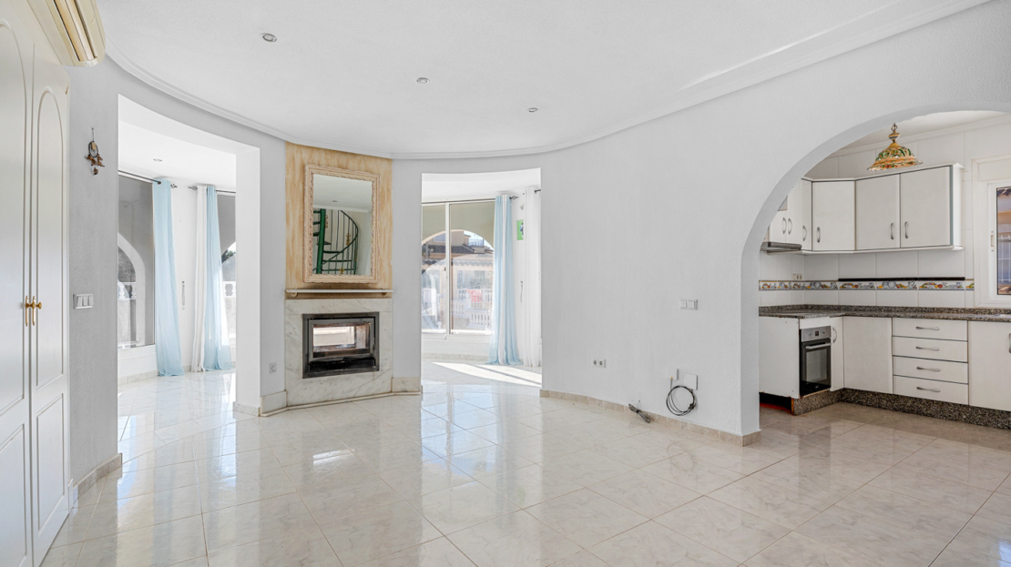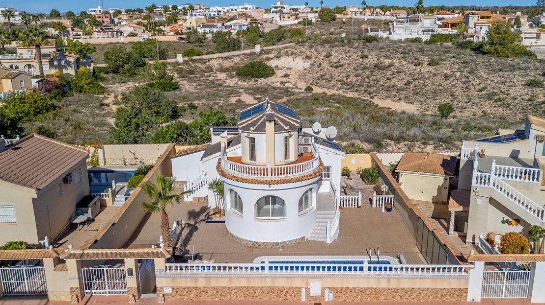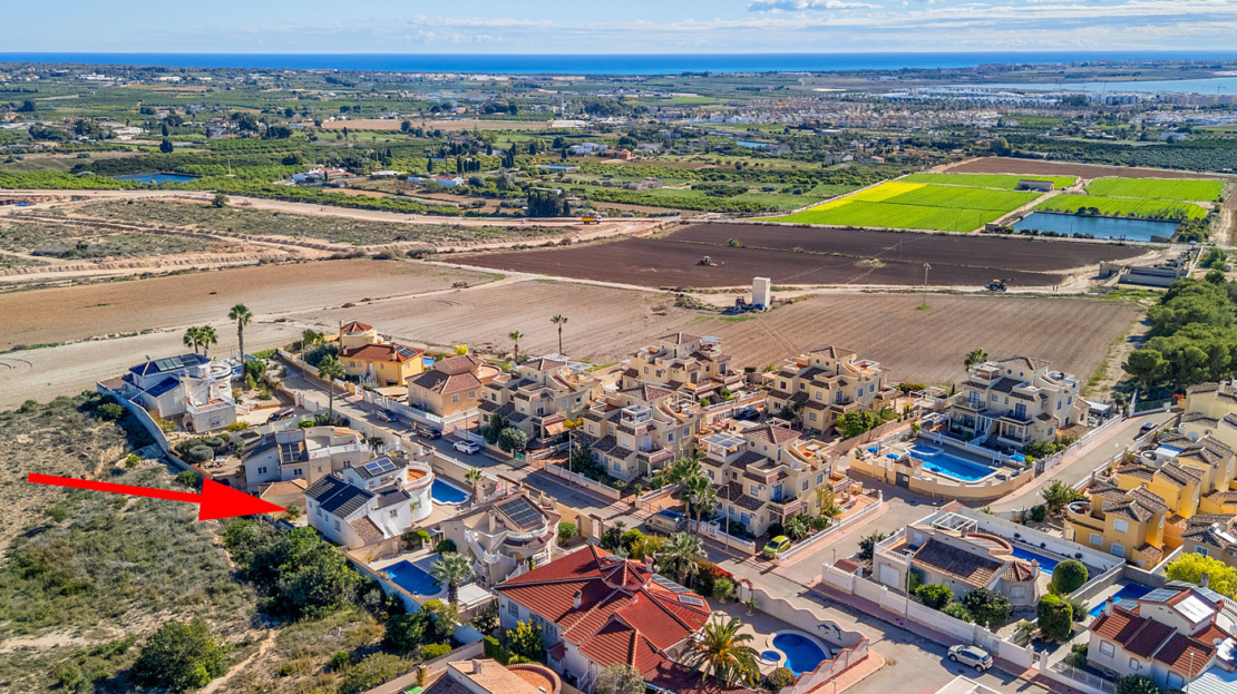 Please note:Photos with furniture are home-staged visualizations meant to show how the home could look when furnished, including a new kitchen and new bathrooms. The property is currently empty.___________________________________________________________________________________________________________________________________Dreaming of a villa with character, space, and one of the best locations in Rojales?This lovely resale villa offers a generous 160 m² distributed over 4 bright bedrooms and 2 well-designed bathrooms – perfect for family life, holidays, and relaxation.The house was built in 2002 and is sold unfurnished, giving you complete freedom to create the home you’ve always imagined.To help you get inspired, we have created renovation and interior design suggestions that show how the villa can be transformed into a modern and inviting home. If you would like assistance with the process, our service team is ready to offer professional guidance.The villa faces south, meaning plenty of sunlight and warmth throughout the day – both indoors and outdoors. Outside, a private swimming pool awaits, allowing you to enjoy the fantastic climate all year round. From both the house and the plot, you can enjoy impressive views of the mountains, landscape, lake, and sea, creating a peaceful and scenic setting for everyday living.The villa is equipped with solar panels for electricity, helping to keep your energy costs low.Rojales is known for its charming atmosphere with cosy cafés, local specialty shops, and beautiful natural surroundings. It offers an active and pleasant community where both families and lifestyle-seekers feel at home. La Marquesa Golf is located close by – a major plus for golf enthusiasts and those who appreciate green surroundings.Contact us today for more information or to arrange a viewing.This villa gives you the opportunity to live with views of it all – in bright, spacious, and comfortable surroundings, where the potential is just as impressive as the scenery.