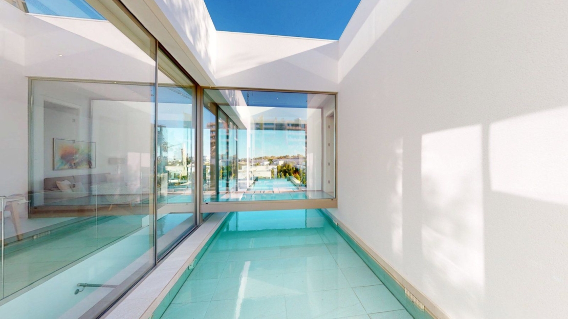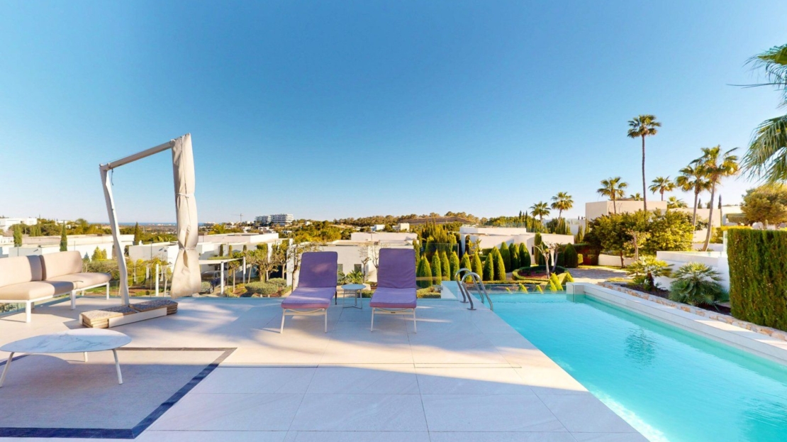 This stunning south-facing villa is located in the exclusive Limonero Community, with direct access to the award-winning golf course. Set on a 697 m² plot, it offers 260 m² of beautifully designed living space, a 45 m² solarium, and an elegant private pool running the length of the home.