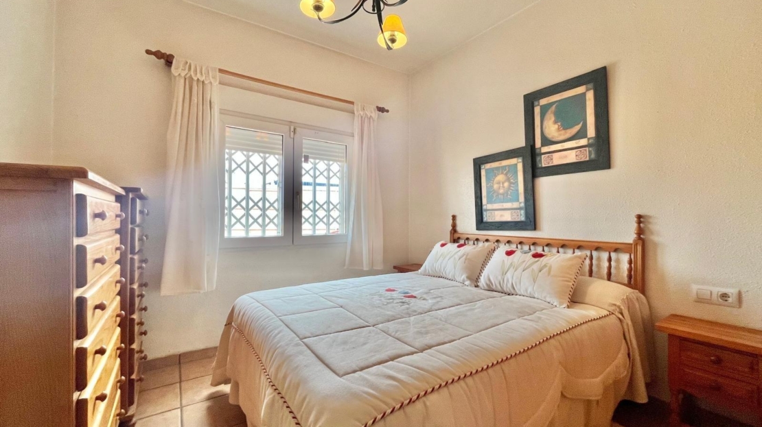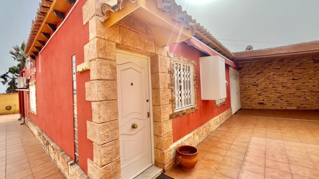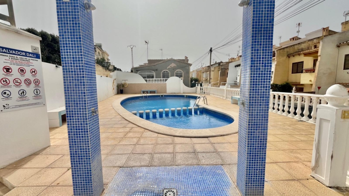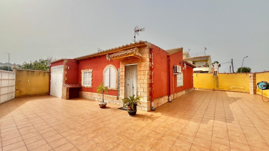 Chalet independiente con gran parcela y privacidad en Los Balcones – Torrevieja Chalet en venta en una de las zonas residenciales más tranquilas y demandadas, conocida por su entorno privilegiado, su proximidad a las salinas y su excelente conexión con todos los servicios. La vivienda se ubica sobre una amplia parcela de 300 m², completamente pavimentada y rodeada de muros altos que garantizan total privacidad, ideal para disfrutar del clima mediterráneo durante todo el año. Dispone de: Garaje muy espacioso con capacidad para varios vehículos, además de zona extra de almacenamiento. Dos habitaciones amplias, luminosas y bien distribuidas. Gran salón, perfecto para reuniones familiares o momentos de relax. Cocina independiente, funcional y con excelente ventilación. Baño completo con ducha de hidromasaje, pensado para el máximo confort. La vivienda se encuentra dentro de una urbanización con piscina comunitaria, perfecta para disfrutar en verano en un entorno cuidado y familiar. Además, está equipada con aire acondicionado tipo split en el salón, aportando confort tanto en verano como en invierno. Una excelente oportunidad para vivir o invertir en una de las mejores zonas de la Costa Blanca.