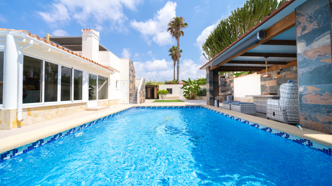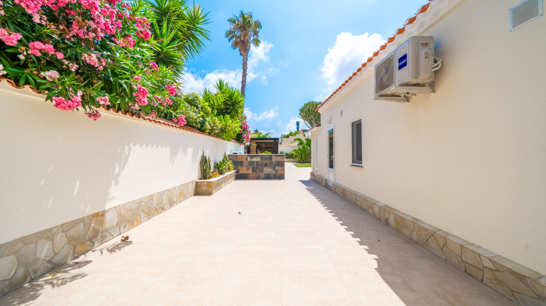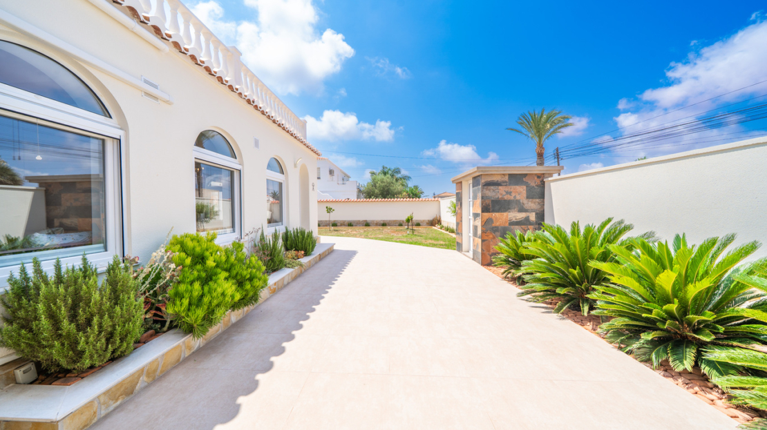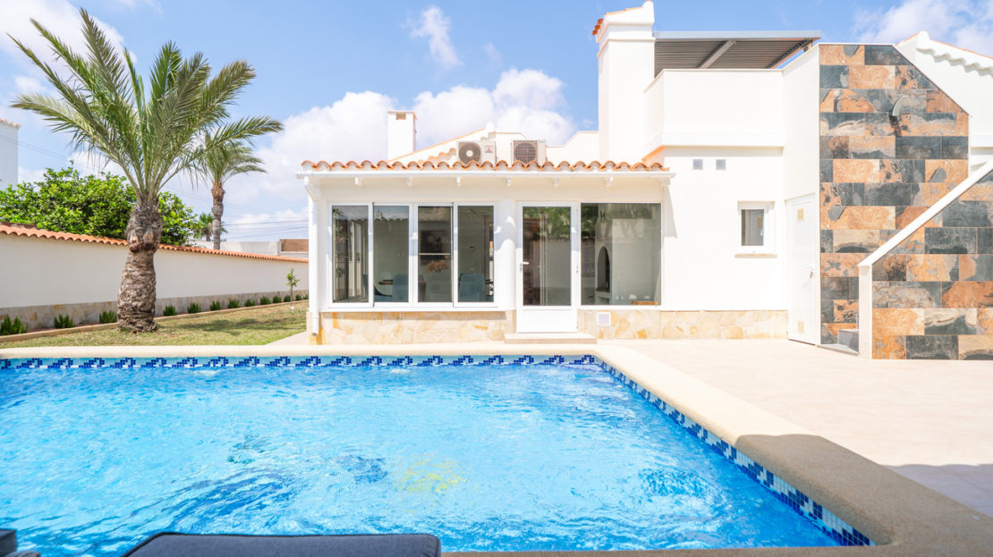 Discover unparalleled luxury and serenity in this stunning, fully renovated villa, perfectly situated near the famous Pink Lake of Torrevieja!This isn’t just a house; it’s a lifestyle. Experience ultimate comfort and superior design with high-quality materials throughout the impressive 201m² built area, completely renewed in 2025 to meet the highest modern standards.Key Features You’ll Love:Ultimate Relaxation: Dive into your own private, salinated pool with heating—perfect for year-round enjoyment. The dedicated next-to-pool leisure area and separate rooftop terrace offer multiple idyllic spots for sunbathing and socializing.Spacious & Elegant: The home boasts 4 generous bedrooms and 3 modern bathrooms, offering ample space for family and guests. Enjoy entertaining in the two spacious living areas, complete with a cozy fireplace for those cooler evenings.Premium Comfort: Say goodbye to cold feet! Enjoy luxurious comfort with floor heating throughout the entire house. Plus, elevate your wellness routine with your very own sauna!Outdoor Oasis: Set on a substantial 771m² garden, the property provides a private haven for outdoor living, featuring a dedicated BBQ area for al-fresco dining and a separate storage building for convenience.Practical Amenities: The property includes covered parking for two cars, ensuring security and ease of access.Located in a sought-after area, this villa offers a unique opportunity to own a piece of paradise near a natural wonder. Don’t miss the chance to experience the pinnacle of Mediterranean living!Contact us today to schedule your exclusive viewing!