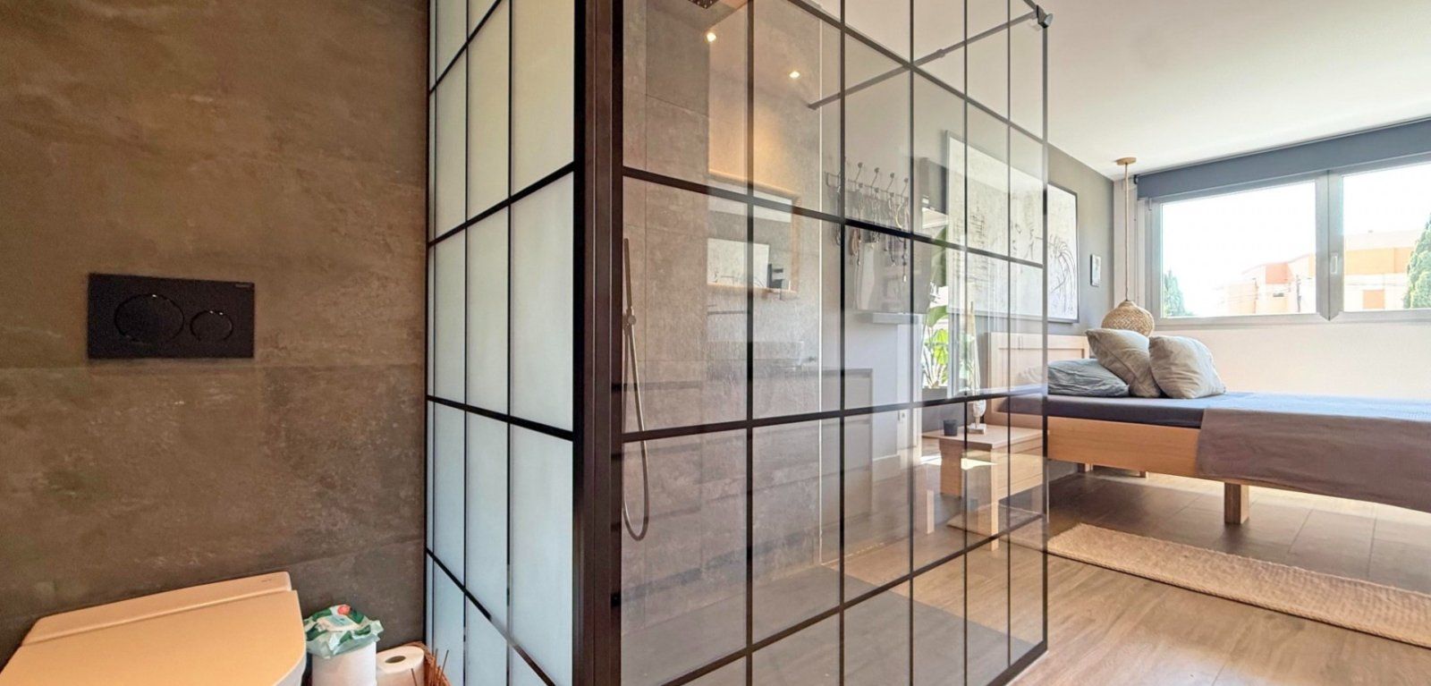 The property features 3 spacious bedrooms and 2 stylish bathrooms, thoughtfully designed with high-quality details. Two private balconies allow you to enjoy different perspectives – one overlooking the sparkling communal pool with a glimpse of the Mediterranean, the other capturing the morning or evening light.