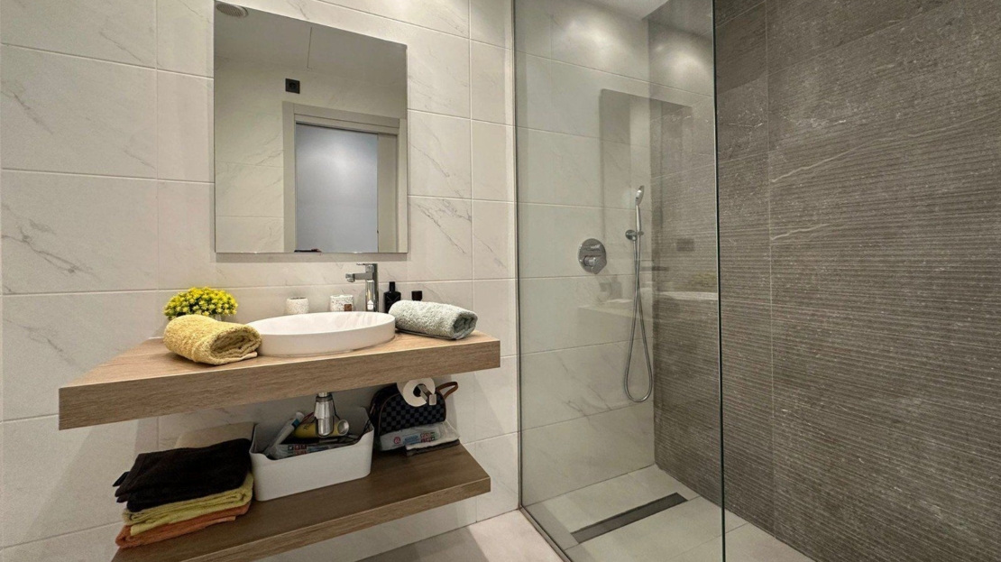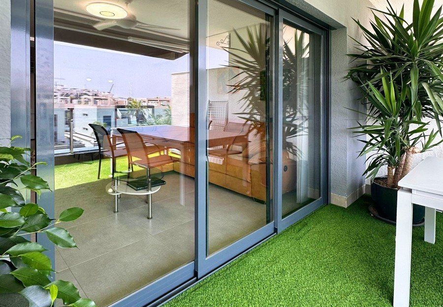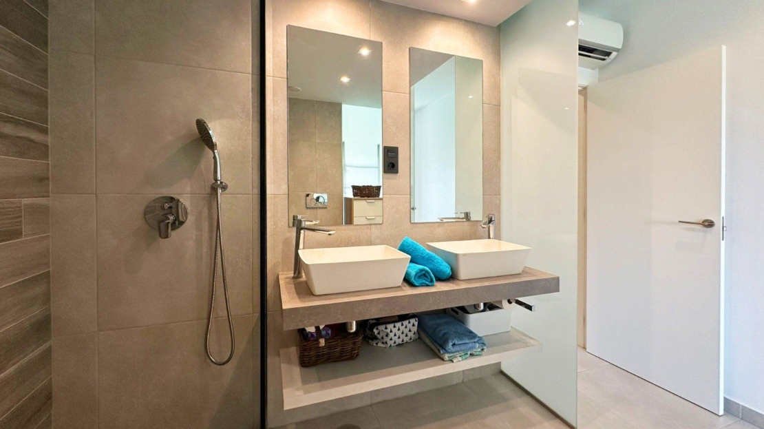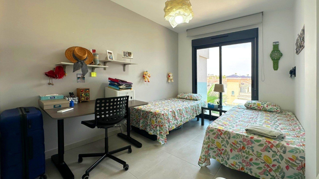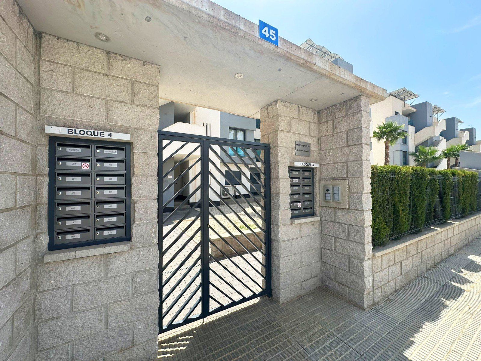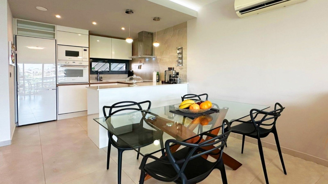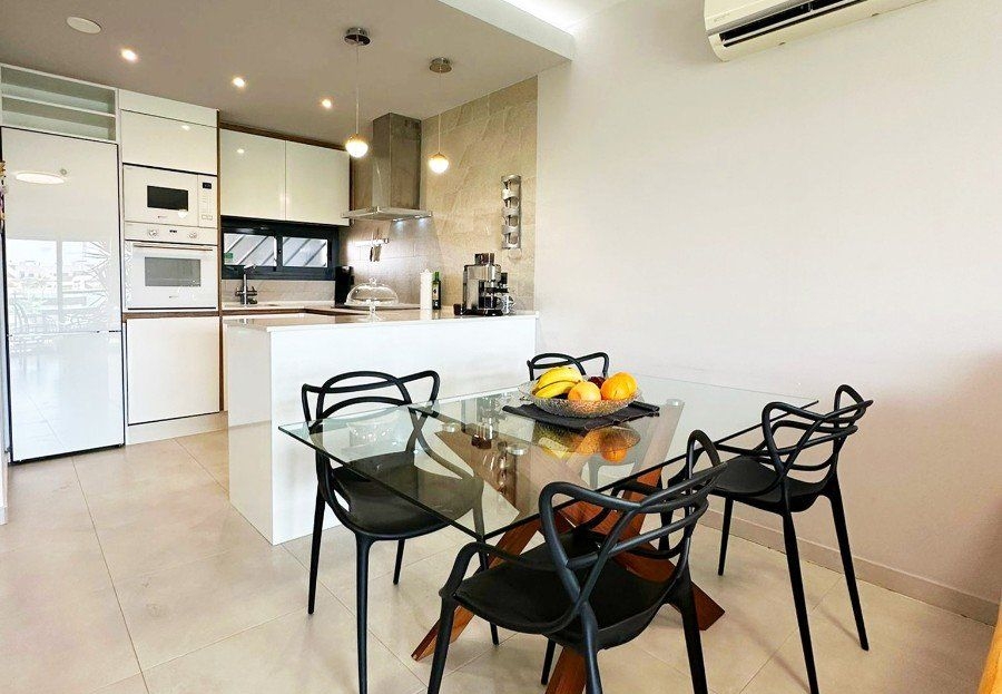 OASIS BEACH XII - Nous sommes ravis de vous présenter cet incroyable appartement de 3 chambres situé dans le complexe résidentiel très prisé Oasis Beach XII. Bénéficiant d'une orientation sud tout simplement parfaite, cet appartement de luxe de 103 m² est la fusion ultime entre élégance moderne et confort relaxant. Vous allez adorer la vue imprenable sur le jardin luxuriant et la piscine extérieure scintillante ! Et vous pourrez en profiter depuis le confort de votre propre maison ! Ce havre de confort et de sophistication est tout simplement magnifique ! Il est équipé de la climatisation pour vous garder au frais et entièrement meublé avec des appareils électroménagers haut de gamme. À l'intérieur, vous trouverez une cuisine, un salon et une salle à manger, ainsi que trois chambres et deux salles de bains, dont une en suite. La terrasse, accessible depuis le salon et la chambre principale, est l'endroit idéal pour se détendre au soleil ou prendre vos repas en plein air. Vous pouvez l'ouvrir ou la fermer en partie selon vos besoins, ce qui en fait un espace polyvalent et agréable. Vous apprécierez le confort de votre propre débarras privé et de votre place de parking souterrain! L'ensemble du complexe est entièrement clos et accessible via un système d'entrée électronique, offrant aux résidents une plus grande tranquillité et un parking pratique sur place. Ce n'est pas tout : vous aurez également accès aux meilleures installations communautaires des environs, notamment un espace de remise en forme en plein air et un centre de bien-être avec sauna et jacuzzi. Construit en 2019, cet appartement est la quintessence de l'excellence en matière de design et de qualité. Il offre un style de vie incomparable dans l'une des destinations les plus prisées de la Costa Blanca Sud - un véritable joyau !