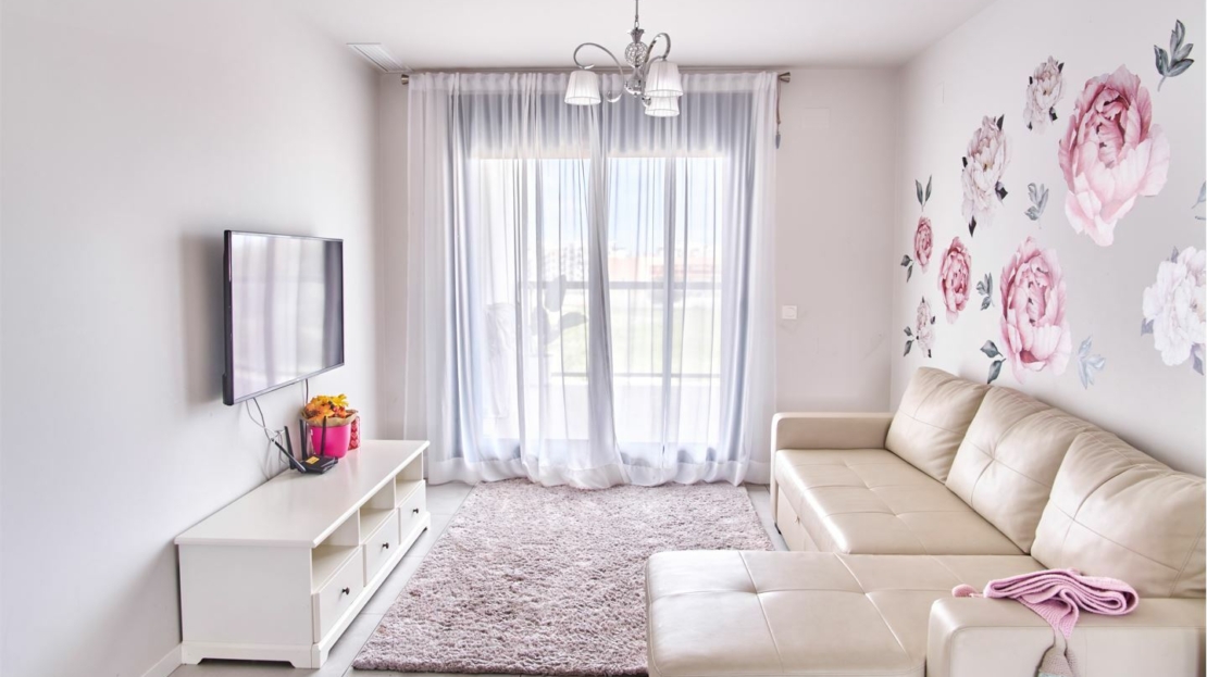 We offer a modern apartment in the city of Mil Palmeras.The apartment consists of two bedrooms, one bathroom, a spacious open-plan kitchen with a dining area, a living room with access to a large terrace overlooking the surroundings. The total area of ​​the apartment is 85 sq.m.The apartment is equipped with central air conditioning and a water heater.It is sold partially furnished.The apartment is located in a closed residential complex with a pool. The beach is only 500 m away.All necessary services for living and leisure are nearby. By buying property in Spain, it is possible to obtain Spanish residency. Our company helps to arrange any type of residency permit.