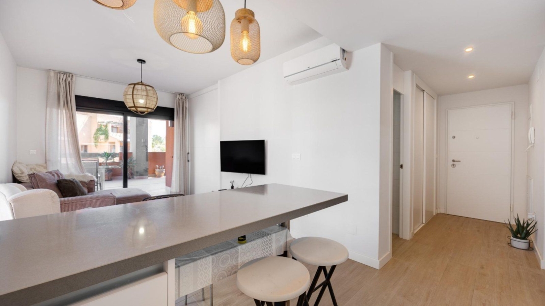 Nous vous présentons ce magnifique appartement situé au deuxième étage d’un immeuble moderne avec ascenseur, qui se distingue par sa spacieuse, sa luminosité et son excellent agencement. Avec 87 m² construits, ce logement comprend 2 chambres confortables et 2 salles de bains complètes, idéales pour les familles, les couples ou comme résidence secondaire.Son orientation est assure une excellente entrée de lumière naturelle tout au long de la matinée, créant des espaces chaleureux et agréables. L’un des plus grands atouts est sa spectaculaire terrasse de 35 m², parfaite pour profiter de l’extérieur, organiser des dîners ou simplement se détendre au soleil.La propriété est livrée entièrement meublée, avec un design fonctionnel et accueillant. Elle est équipée de la climatisation, garantissant un confort maximal toute l’année.De plus, le prix inclut une place de parking privée, et l’immeuble fait partie d’une communauté soignée qui offre une belle piscine commune, idéale pour profiter du beau temps dans un environnement calme et agréable.Une excellente opportunité pour ceux qui recherchent qualité de vie, confort et emplacement imbattable.