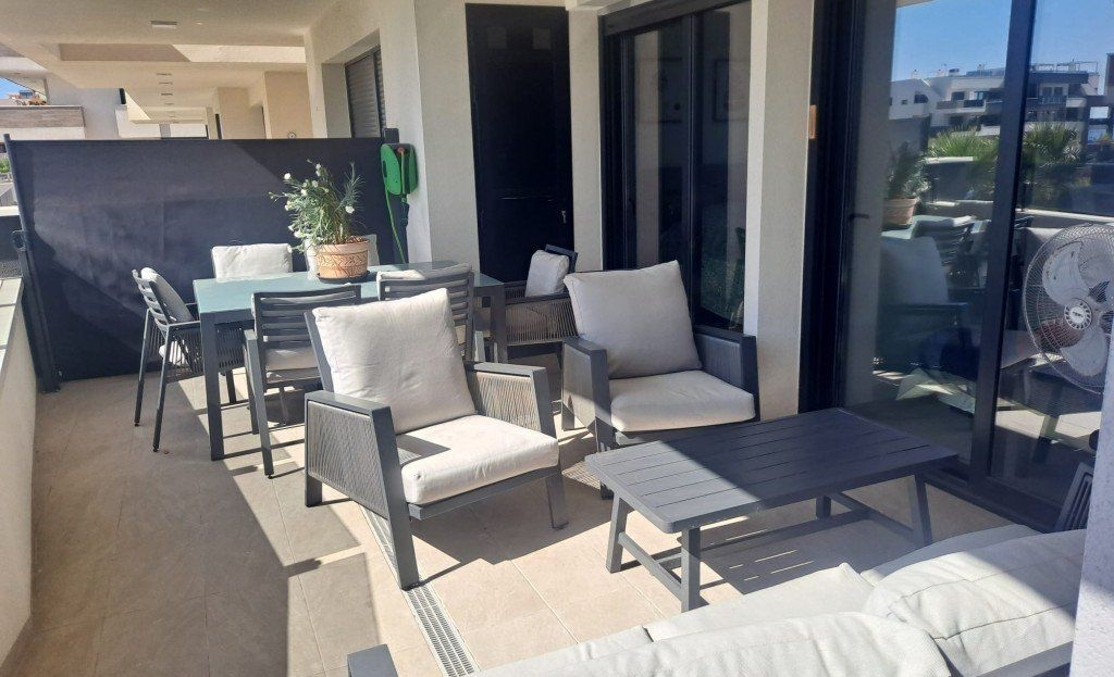 Bienvenue à Orihuela Costa dans ce complexe qui combine parfaitement design moderne, confort et vue sur la mer. Situé dans la résidence exclusive Amanecer Deluxe, ce superbe appartement est situé au premier étage d’un immeuble de seulement trois niveaux, en plein cœur d’Orihuela Costa, à quelques pas de la Méditerranée et à proximité immédiate de tous les services.Avec une surface totale de 98,37 m², cet appartement offre des espaces ouverts avec une distribution fonctionnelle. Il se compose de 2 chambres très lumineuses, deux salles de bains —dont une en suite—, une cuisine ouverte entièrement équipée et un salon-salle à manger spacieux et accueillant, idéal pour profiter de moments conviviaux en famille ou entre amis. De plus, il dispose d’une terrasse filante qui longe toute la façade de l’appartement, apportant une abondante lumière naturelle et un cadre idéal pour des moments inoubliables en plein air. L’appartement est vendu entièrement meublé et équipé avec des matériaux haut de gamme : fenêtres en PVC avec double vitrage et volets roulants électriques, chauffage au sol dans les salles de bains, climatisation et finitions modernes et élégantes. Il comprend également des placards intégrés dans toutes les chambres, un grand débarras ainsi qu’une place de parking, garantissant espace et confort pour toute la famille. La résidence Amanecer Deluxe propose des espaces communs exceptionnels : une piscine commune avec vue sur la mer, des jardins paysagers, une zone barbecue idéale pour des soirées conviviales, un aire de jeux pour enfants ainsi que des espaces verts avec accès à une fontaine relaxante. L’ensemble est situé dans un environnement sécurisé avec surveillance 24h/24, offrant tranquillité et intimité tout au long de l’année. Vous profiterez également d’une salle de sport entièrement équipée, parfaite pour celles et ceux qui recherchent un mode de vie actif et sain. Avec une situation géographique privilégiée, à proximité immédiate de supermarchés, pharmacies, cafés, restaurants, bars, et à seulement quelques minutes à pied de la plage et du célèbre centre commercial La Zenia Boulevard, ce bien est parfait aussi bien comme résidence principale, investissement locatif ou résidence secondaire au soleil. La proximité des meilleurs golfs de la région et du marché animé du samedi vient parfaire cette offre unique.