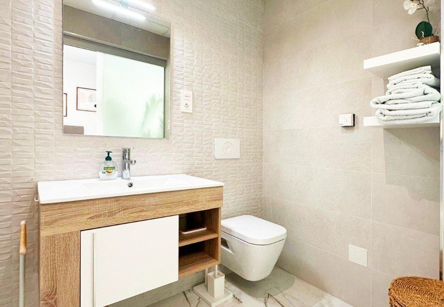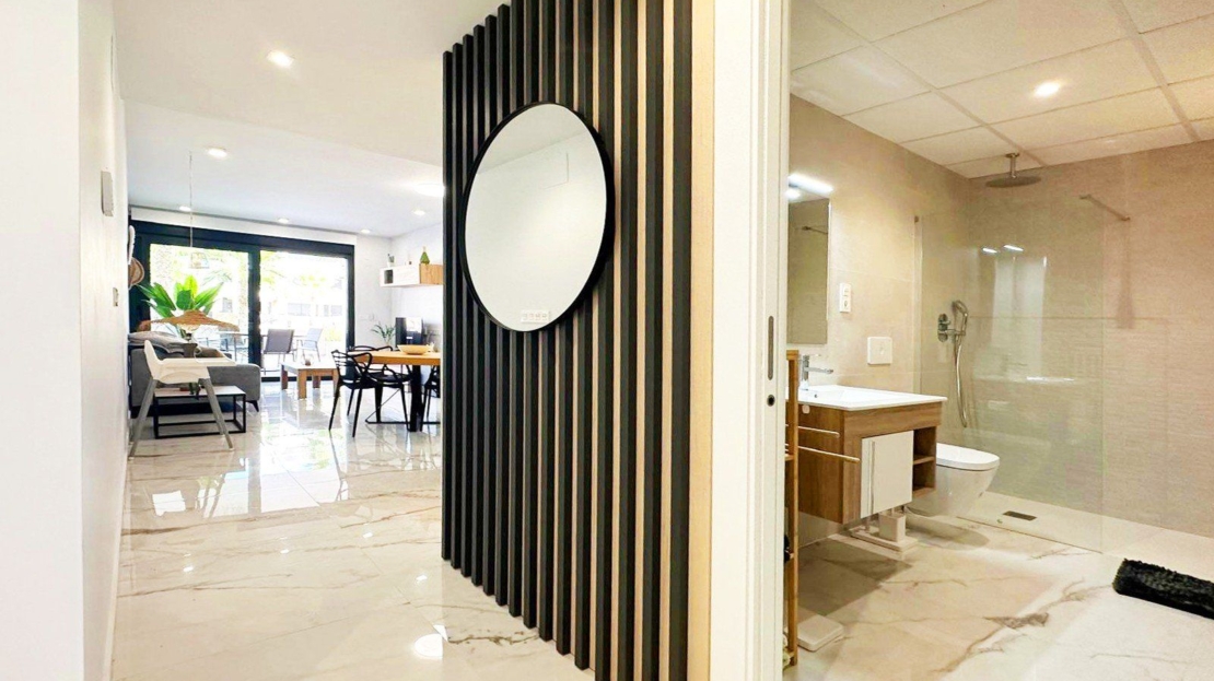 Ce magnifique appartement de luxe entièrement meublé, construit en 2023, offre le meilleur style de vie dans un cadre privilégié. Accueilli par une atmosphère lumineuse et accueillante, grâce à son orientation est/ouest, l'appartement, situé au rez-de-chaussée de l'immeuble, offre un salon avec deux accès aux terrasses extérieures où vous pouvez profiter d'un accès privé aux jardins et à la piscine de la communauté et du climat méditerranéen.
