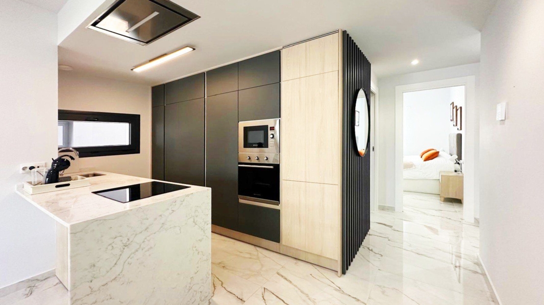La cuisine est l'exemple même du luxe, avec des finitions de haute qualité et une intégration parfaite avec le salon, créant un espace idéal pour partager des moments avec la famille et les amis. Depuis le salon, vous accédez à une charmante terrasse de 12 m², d'où vous pourrez profiter d'une vue imprenable et du climat méditerranéen.
