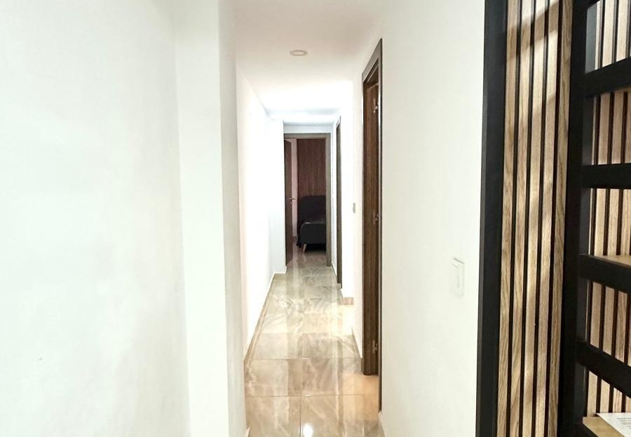 Appartement rénové en plein cœur de Torrevieja, à 200 mètres de la mer, avec 4 chambres et licence touristique. Nous vous présentons ce magnifique appartement récemment rénové, situé en plein cœur de Torrevieja, à seulement 200 mètres de la mer. Spacieux et moderne, il offre tout le confort nécessaire, idéal comme résidence principale, résidence secondaire de vacances ou investissement locatif à fort rendement grâce à sa licence touristique en vigueur. La propriété, d'une surface habitable de près de 100 m², est aménagée de manière fonctionnelle et élégante. Elle dispose de quatre chambres doubles, toutes spacieuses et lumineuses, idéales pour les familles nombreuses ou pour recevoir confortablement. Elle dispose également de deux salles de bains complètes, toutes équipées de douches et de finitions modernes, conçues pour garantir praticité et confort. Le salon-salle à manger est intégré à une cuisine ouverte moderne, créant une atmosphère ouverte et polyvalente, idéale pour des moments conviviaux et agréables lors de réunions de famille ou entre amis. La maison dispose d'un charmant patio andalou avec pergola, un espace privé idéal pour se détendre, créer un espace détente ou profiter d'un repas en plein air. L'appartement est équipé de la climatisation centrale, garantissant une température agréable toute l'année. Grâce à sa récente rénovation, la maison allie style contemporain, efficacité et qualité dans les moindres détails. Son emplacement est l'un de ses atouts majeurs : en plein centre de Torrevieja, à proximité de tous les services tels que supermarchés, restaurants, transports en commun, pharmacies et espaces de loisirs, et à deux pas de la plage, vous permettant de profiter du style de vie méditerranéen sans avoir besoin de véhicule. En bref, il s'agit d'une opportunité unique pour ceux qui recherchent espace, modernité et un emplacement privilégié, avec en plus une licence touristique qui garantit un excellent potentiel d'investissement dans l'une des zones les plus prisées de la Costa Blanca.