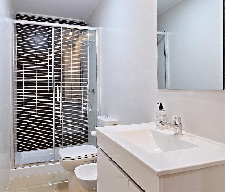 This modern apartment with a garage is located in the center of the city, right by the sea, a few steps from the promenade and the best beaches in the city. It is located on the penultimate (third) floor of a recently completed house. The apartment has 3 bedrooms, a living room, a separate kitchen with a window and two separate bathrooms. The 8 m2 loggia is east-facing. The entire apartment is fully air-conditioned. The apartment also has a parking space in the underground garage directly in the house and a cellar storage room. There is also a shared bicycle/buggy storage room. The street is a very quiet one-way street. There are many restaurants, shops, parks, theaters, etc. in the area. A supermarket is around the corner. Very good Very good transport connections due to the integrated city bus service and the nearby central bus station. It is an spacious apartment in perfect condition, ready to move in without any additional investments.