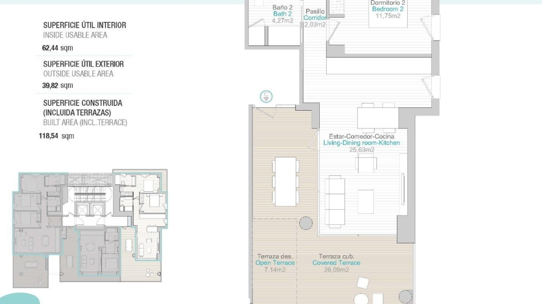 Grandes zones communes avec jardins, piscine, paddle tennis, zone pour enfants. Au 11ème étage de la tour 1 : piscine à débordement, sauna, salle de sport et zone de détente avec vue sur la mer.