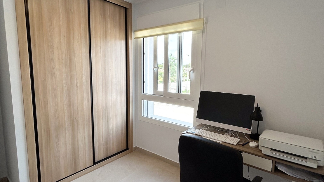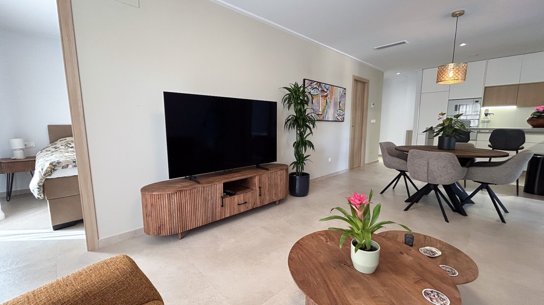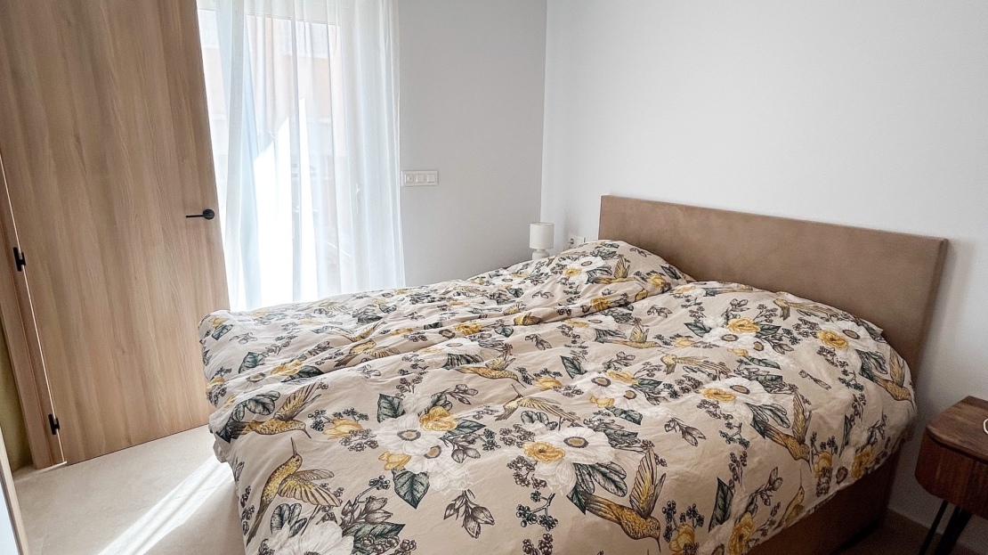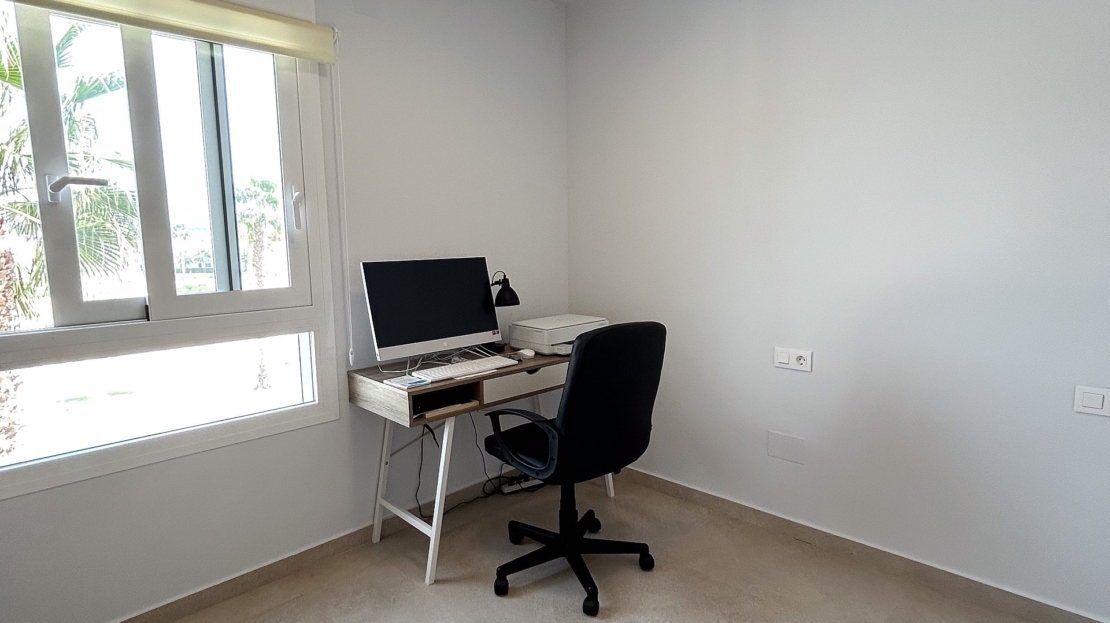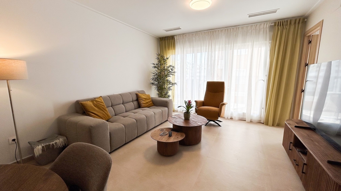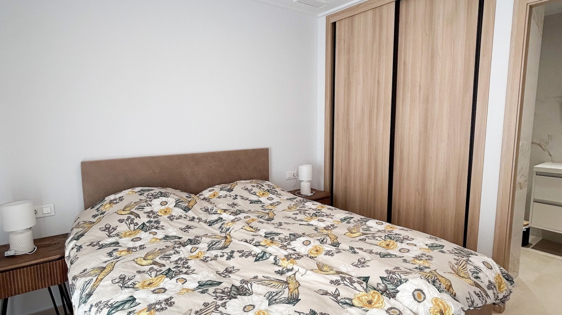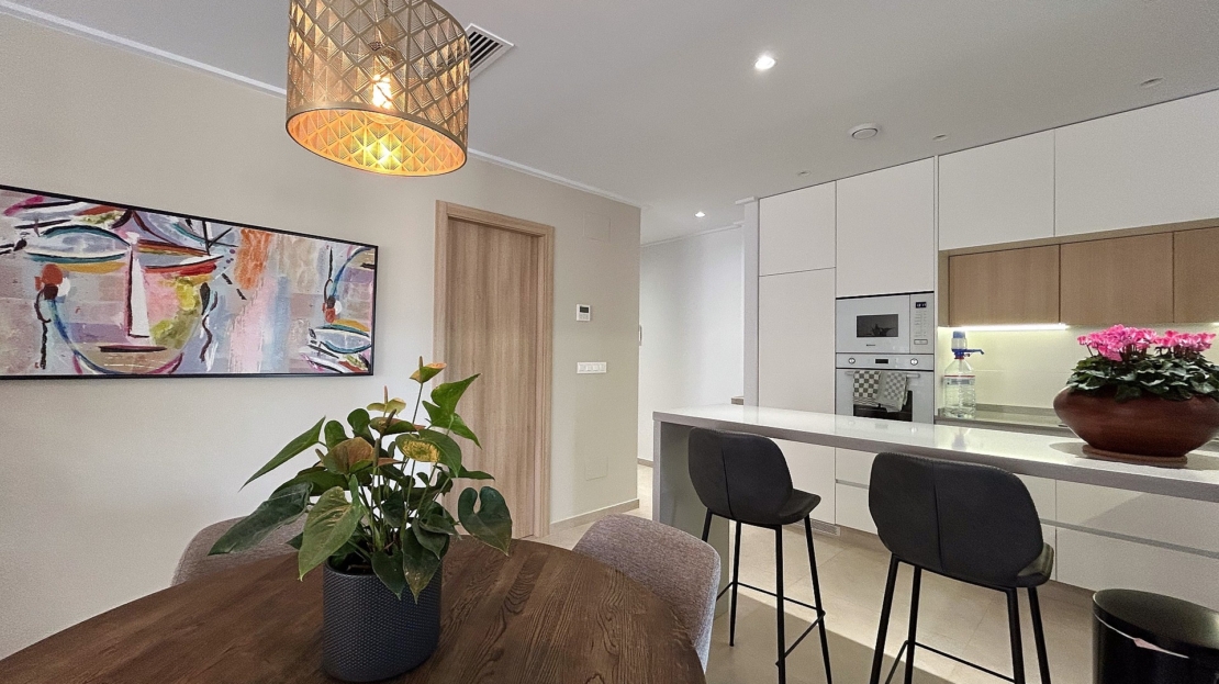Il est parfait comme résidence secondaire ou pour une vie à l’année au soleil.Situé au deuxième étage (avec ascenseur) et orienté sud-est, il bénéficie d’une luminosité exceptionnelle grâce à de larges baies vitrées et à une spacieuse terrasse.La distribution comprend :Un séjour lumineux avec accès direct à la terrasseUne cuisine ouverte moderne équipée d’électroménagers et d’un bar à petit-déjeunerTrois chambres avec placards intégrésDeux salles de bains élégantes, dont une en suiteEspaces de rangement supplémentaires dans le hall et sur la terrassePrestations et équipementsPlace de parking privée dans le garage souterrain (incluse)Cellier sur la terrasse avec chauffe-eau et lave-lingeVolets roulants électriques dans tout l’appartementClimatisation centrale (chaud/froid)Store automatique sur la terrasseFinitions haut de gamme et décoration récenteMobilier et décoration inclus dans le prix, pour un bien entièrement clé en mainNe laissez pas passer cette occasion unique de profiter du mode de vie méditerranéen sous le soleil espagnol.