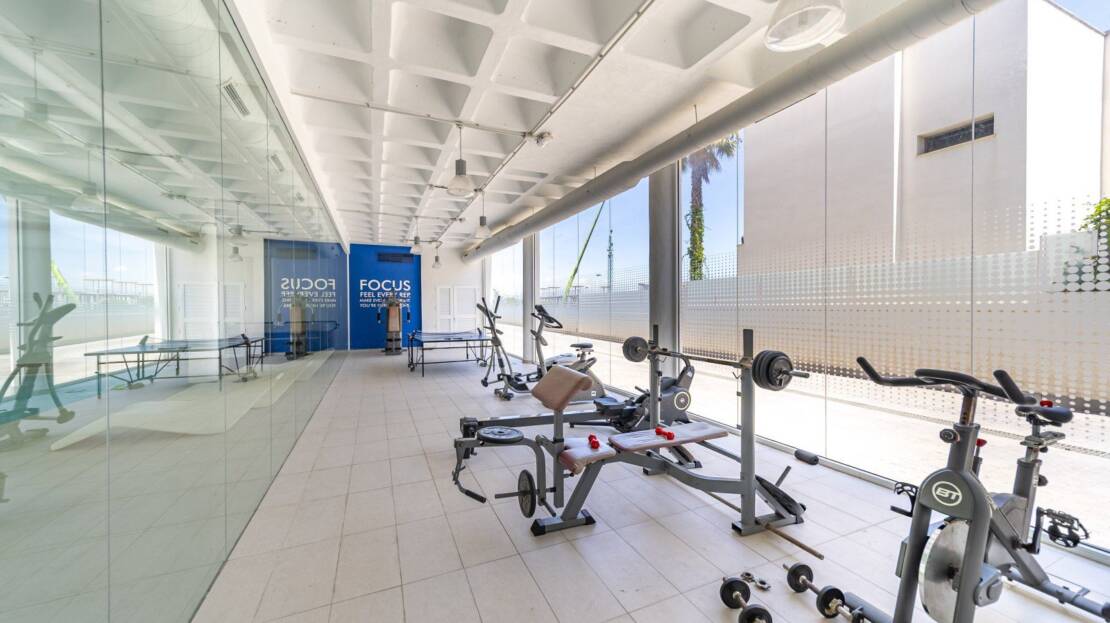 La résidence dispose d’une piscine commune avec cascade et zone de plage, piscine intérieure chauffée, salle de sport, sauna et vestiaires. Construit en 2013, à seulement 850 m de la plage de Guardamar et proche des bars, commerces et restaurants. L’aéroport d’Alicante est à 30 minutes en voiture.