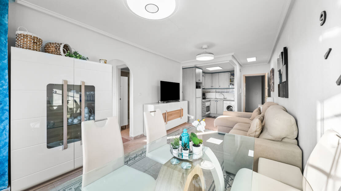 Appartement situé au quatrième étage avec terrasse orientée sud-ouest et vue sur le lagon salé de La Mata. Il comprend 2 chambres, 1 salle de bain, des placards intégrés et une terrasse de 6 m². Situé dans un immeuble avec piscine communautaire, à seulement 200 mètres de la plage.