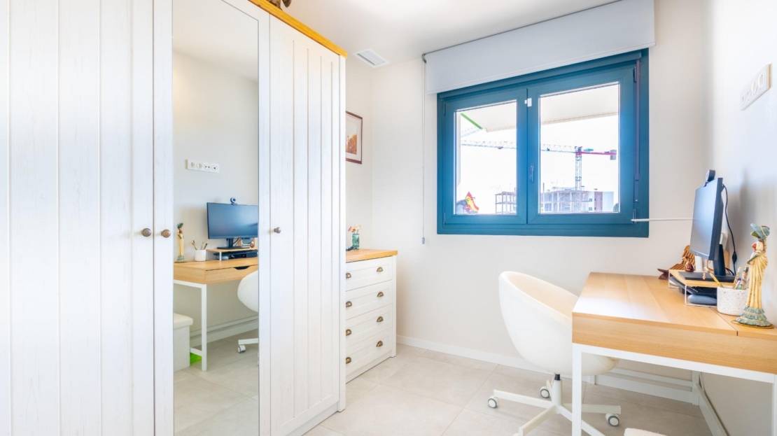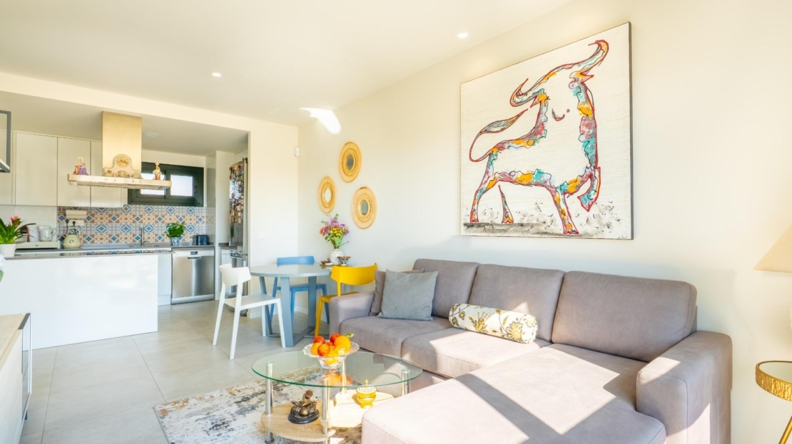 We present to you this modern apartment located in a gated residential complex with green areas and a swimming pool. This is a new-build resale property, in excellent condition and ready to move into. It is situated just 700 meters from one of the best beaches in Mil Palmeras, in the prestigious area of Orihuela Costa. This highly sought-after location is ideal for enjoying the Mediterranean climate, peace and quiet, and an active, healthy lifestyle. The apartment features a comfortable and functional layout, bright and inviting. A spacious south-facing terrace with large panoramic windows and views of the park and the sea makes it an excellent place to relax and enjoy the sunny weather. The modern living room is connected to the dining area and an open-plan renovated kitchen, fully equipped with furniture and appliances. The property includes 2 bedrooms with built-in wardrobes, 2 fully equipped bathrooms, and a private storage room—perfect for keeping the home organized. A private parking space is also included in the price. Excellent location, close to the sea, leisure options, and all essential services. Just 700 meters from the beach, with supermarkets, restaurants, and amenities nearby, and only a 10-minute drive to the Zenia Boulevard. Located in a quiet and safe area, it is perfect for comfortable living. With over 300 sunny days a year and a mild climate, you can enjoy outdoor living, seaside walks, water sports, golf, and social activities. An ideal option for those seeking a peaceful and exclusive seaside lifestyle. Your new home in Mil Palmeras awaits: comfort, sunshine, and tranquility just steps from the beach. The property price does not include notary fees, registration costs, or taxes, which may vary according to current legislation in the Valencian Community.