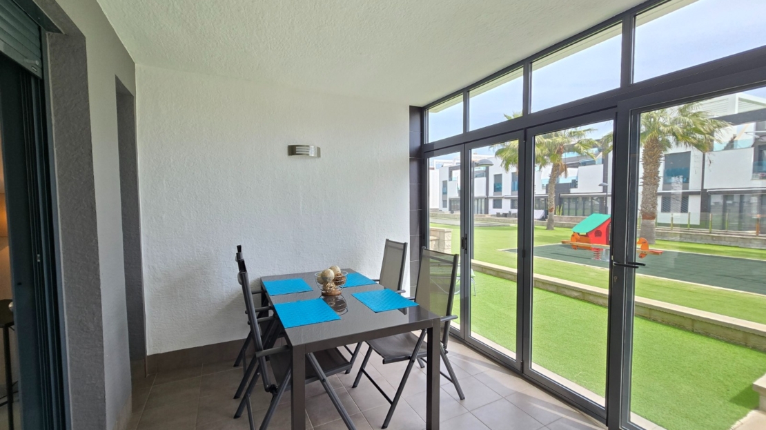 Découvrez ce magnifique appartement de plain-pied, prêt à emménager, situé dans le quartier prisé de Punta Prima, à quelques pas de la plage, de bars animés, de restaurants et de divers commerces. La combinaison idéale entre confort, emplacement et qualité de vie sur la Costa Blanca.