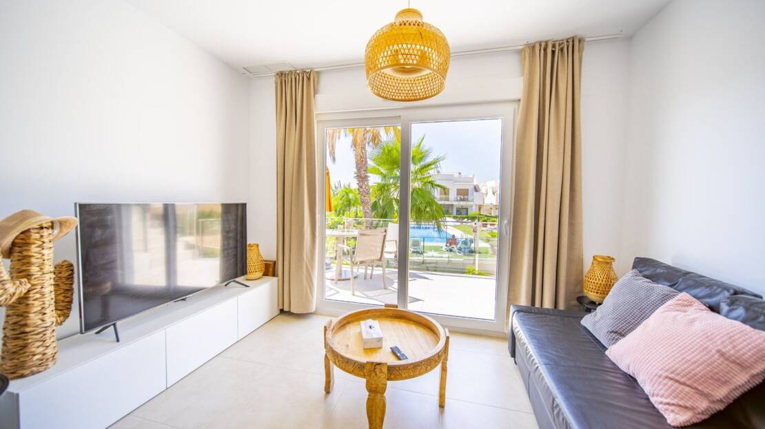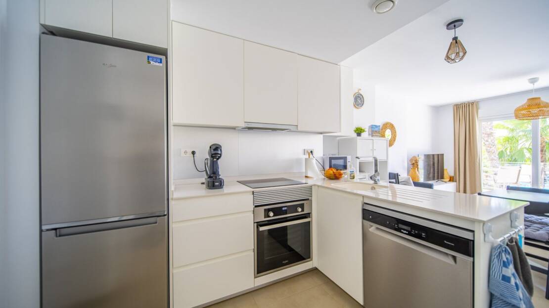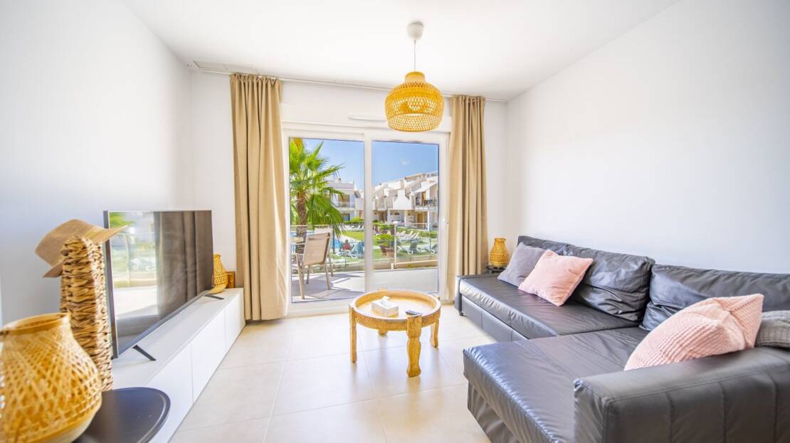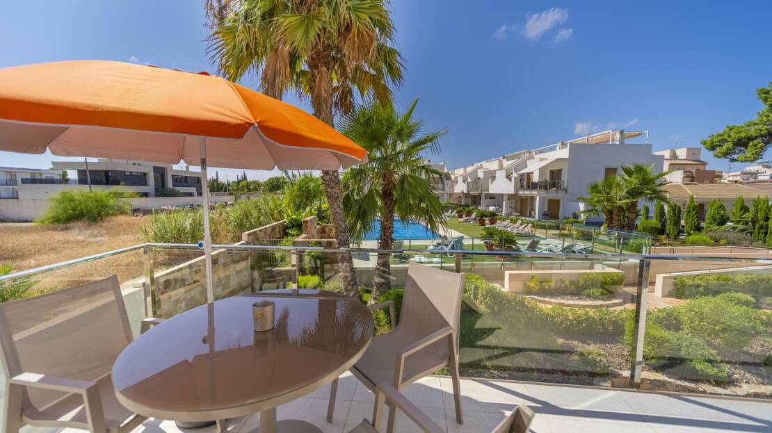 Situé dans la résidence Sun Place – El Retiro, ce bungalow d’angle à l’étage offre 2 chambres et 2 salles de bains, avec une surface construite de 61 m² et un grand solarium privé de 46 m², en plus de la terrasse. Il est vendu meublé et équipé (à l’exception des effets personnels), et comprend une place de parking extérieure privée ainsi qu’un débarras. Le logement dispose de la climatisation réversible et de fenêtres à double vitrage dans toutes les pièces.