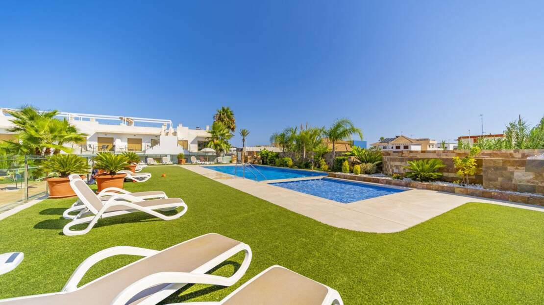 La résidence offre une piscine communautaire, des espaces verts et un emplacement privilégié, à proximité d’un club de padel, de parcs et de tous les services du centre de Pilar de la Horadada. À seulement 6 minutes en voiture de la plage de Torre de la Horadada et à 10–12 minutes des principaux centres commerciaux de la région.