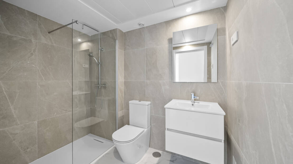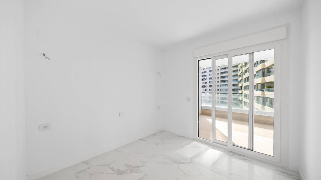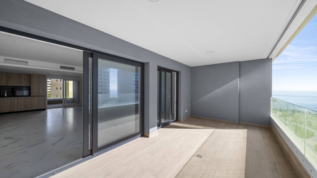 Appartement neuf dans la résidence Posidonia, située en première ligne de mer à Punta Prima. Il comprend 3 chambres et 2 salles de bain, avec une terrasse principale de 16,70 m² orientée sud avec vue sur mer, et une seconde terrasse de 12 m² accessible depuis la cuisine. Le bien comprend une cuisine équipée, chauffage au sol dans les salles de bain, climatisation, place de parking en sous-sol et débarras. Vendu non meublé.