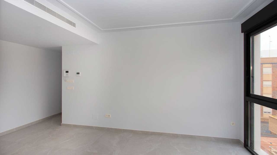 Modern 2 bedroom apartment (3rd floor) in the centre of Torrevieja, Alicante close to Playa del Cura and Paeo Maritimo, with everything you need within walking distance of this popular touristic city.The property consists of a bright spacious living/dining room, a modern open plan L-shape kitchen, two bedrooms with fitted wardrobes, two bathrooms, all windows facing towards the street, sunny south facing balcony with side sea view, terrace to watch the carnivals and panoramic city views.Community area with rooftop terrace and swimming pool, public parking one block away.