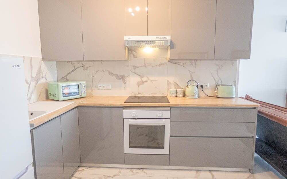 Bienvenue dans cet appartement moderne et rénové de 78 m², où la lumière traverse la maison grâce à de grandes fenêtres et un plan d'étage ouvert qui crée un bel espace. La chambre spacieuse est une oasis de calme, tandis que la salle de bain fraîche offre une atmosphère élégante et confortable. Ici, le salon et la cuisine sont parfaitement intégrés, rendant la maison idéale pour socialiser et profiter de moments partagés.