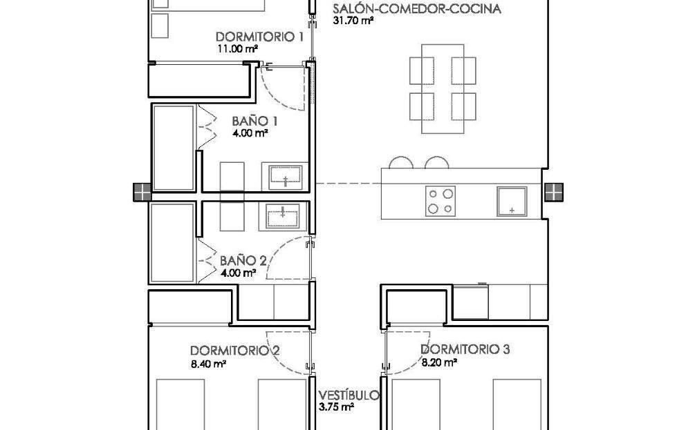Le projet propose des propriétés spacieuses avec 3 chambres et 2 salles de bains, dont une salle de bains attenante à la chambre principale. Les acheteurs peuvent choisir entre des bungalows au rez-de-chaussée avec de grandes terrasses privées ou des unités à l'étage avec une terrasse et un solarium privé sur le toit avec vue dégagée. Toutes les maisons comprennent une place de parking souterrain et un débarras, pour un confort maximal.