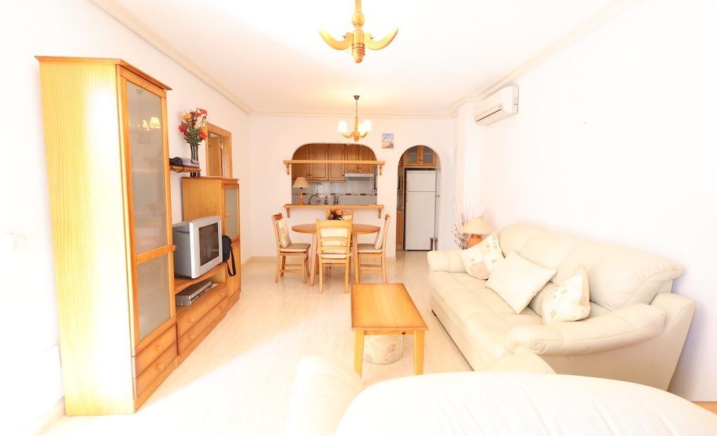 Charmant rez-de-jardin de plain-pied situé face à un espace vert dans l'un des quartiers résidentiels les plus prisés de la région. D'une superficie de 75 m², il comprend 2 chambres avec placards intégrés, 2 salles de bains complètes (dont une en suite), un lumineux salon-salle à manger, une cuisine américaine avec cellier et une agréable terrasse vitrée, idéale pour profiter de la vie en toute saison.. . Le jardin privé d'environ 46 m² offre un espace idéal pour se détendre ou prendre un repas en plein air. La propriété est vendue entièrement meublée, climatisée et comprend également un garage souterrain.. . Le complexe résidentiel dispose d'une belle piscine commune entourée de jardins bien entretenus, créant un environnement paisible et agréable. Situé à proximité de toutes les commodités, supermarchés, restaurants et à quelques minutes des plages d'Orihuela Costa, il est idéal comme résidence principale ou pour les vacances.