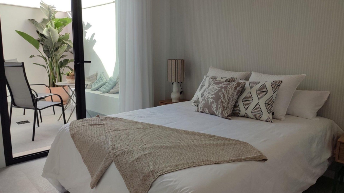 Les intérieurs, élégants et fonctionnels, disposent de cuisines entièrement équipées avec des appareils électroménagers. Les salles de bains sont équipées d'un meuble avec lavabo et lumière. Chaque propriété dispose d'une pré-installation pour l'air conditionné, d'un magnifique solarium pour les étages supérieurs et d'une belle piscine commune, ce qui en fait l'endroit idéal pour profiter et se détendre.