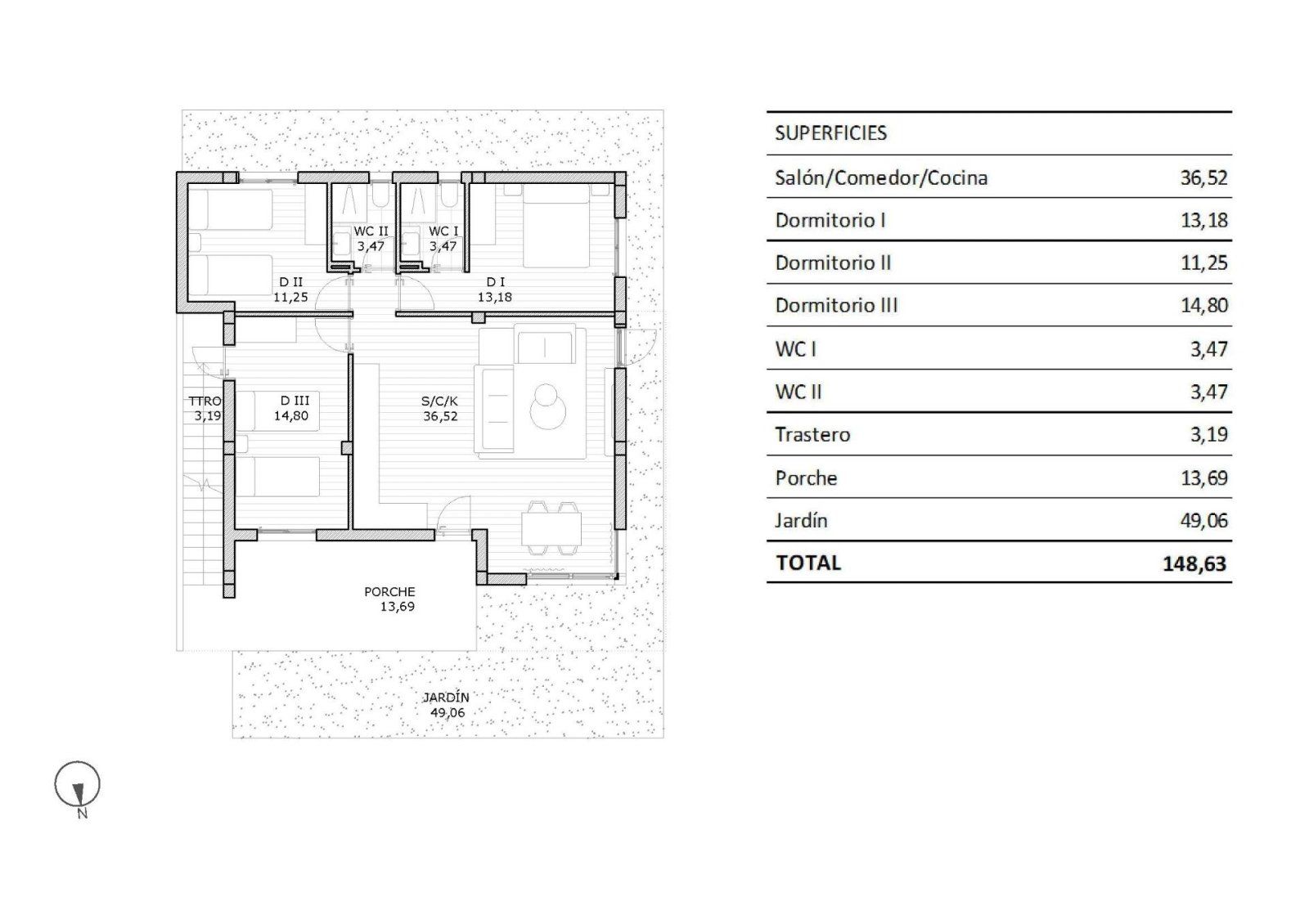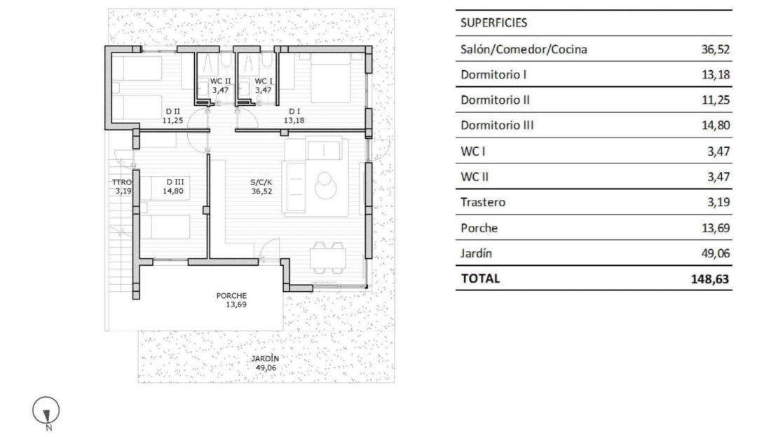 La propriété compte 3 chambres et 2 salles de bains. Distribués sur une surface construite de 82m², chaque coin de cette maison est conçu méticuleusement pour votre bien-être.