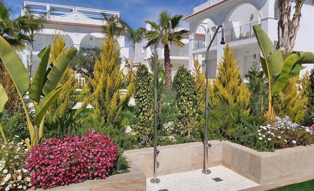 Aire de jeux pour enfants, espace fitness et terrains de tennis gratuits à proximité.Terrasse sur le toit entièrement équipée :Grande table à manger avec six chaises sous un auvent rétractable.Salon extérieur confortable et transats.Cuisine d'été avec barbecue, réfrigérateur et évier.Douche extérieure avec eau chaude et froide.