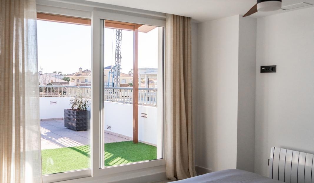 Découvrez ce spectaculaire penthouse d'occasion situé dans le quartier exclusif de La Regia, à Orihuela Costa. Avec une généreuse surface construite de 122 m² et une impressionnante terrasse de 250 m² avec espace barbecue, ce bien est idéal pour profiter du plein air en famille ou entre amis. L'appartement dispose de deux chambres doubles spacieuses et de deux salles de bain complètes. Son aménagement entièrement extérieur offre une vue imprenable sur la nature environnante. De plus, la propriété est équipée d'une porte blindée pour plus de sécurité et est livrée meublée et entièrement équipée, prête à emménager. Située à seulement 1 500 mètres de la mer Méditerranée et à proximité des bus, des centres commerciaux et des écoles, elle offre également un accès facile aux hôpitaux voisins, garantissant un confort absolu, que ce soit pour une résidence principale ou secondaire. Contactez-nous pour plus d'informations.